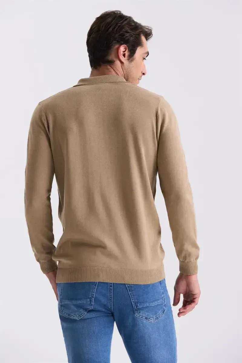 Произведите впечатление своим стильным и удобным стилем. Этот бежевый трикотажный свитер, изготовленный из смеси 65% полиэстера и 35% вискозы, отличается мягкой и прочной конструкцией, обеспечивающей комфорт в течение всего дня. Классический крой подходит для любого типа телосложения, а дизайн с воротником поло добавляет вневременную привлекательность.