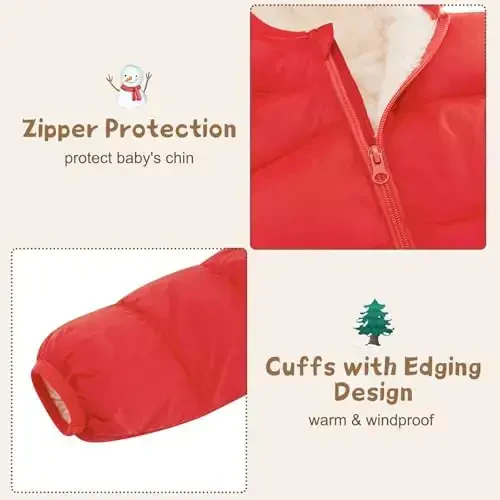 BFUSTYLE Toddler Qishki Palto Kaputli Chaqaloqlar Jun Kurtkasi Qizlar va O'g'il bolalar uchun qalinlashtirilgan kurtka 1-5T* Material: Paxta aralashmasi, jun* Import qilingan* Fermuar bilan yopish* Faqat qo'lda yuvish* MATERIAL: Yaxshi ishlangan bolalar uchun jun kurtka. Ushbu chaqaloq kurtkasining tashqi qatlami yuqori sifatli paxta aralashmasi matosidan qilingan bo'lib, u juda yumshoq, qulay va teriga yoqimli. Ichki qatlami sovuq havoda chaqalog'ingizni issiq tutish uchun qalin jun astaridan qilingan.* DIZAYN: Bolalar qishki paltosi shapkasida yoqimli ayiq quloqlari bilan bezatilgan bo'lib, chaqalog'ingizni yanada yoqimli va jozibali qiladi! Fermuar bilan yopish dizayni kiyish va echishni osonlashtiradi. Ikki amaliy cho'ntak chaqalog'ingizning qo'llarini sovuq havoda issiq ushlab turishi yoki kalitlar, kartalar va boshqalar kabi kichik narsalarni saqlashi mumkin.* O'LCHAM: Kaputli chaqaloq kurtkasi 1-5 yoshli qizlar va o'g'il bolalar uchun mos keladi. Sotib olishdan oldin o'lchamlar jadvaliga qarang. Chunki bir xil yoshdagi bolalar bo'yi va vazni bo'yicha farq qiladi.* HOLAT: Ushbu unisex chaqaloq jun kurtkasi kundalik kiyim va ochiq havoda mashg'ulotlar uchun mos keladi, masalan, parkda o'ynash, sayr qilish, sayohat qilish va hokazo. U kuz va qish uchun juda mos keladi. Shuningdek, chaqaloqning tug'ilgan kuni, Rojdestvo va boshqa bayramlar uchun ajoyib sovg'adir.* ESLATMA: Chaqaloq qishki paltosi uchun qo'lda yuvish tavsiya etiladi. Uni kir yuvish mashinasida ham yuvish mumkin, lekin deformatsiyaga yo'l qo'ymaslik uchun uni kir yuvish sumkasiga solish tavsiya etiladi. Oqartirmang yoki dazmollamang. Quritish uchun osib qo'ying.