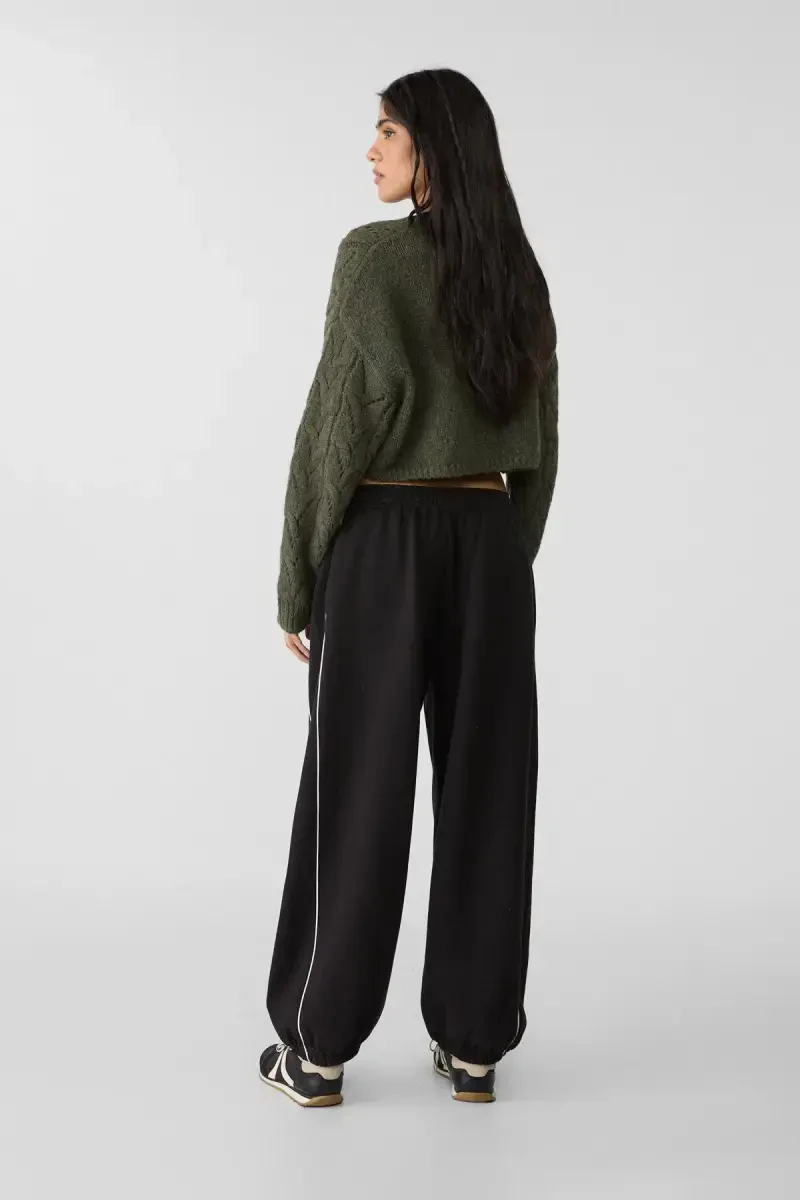 Take your style and comfort to the next level with taped jogger pants. Specially designed for men who want to look stylish and move comfortably in today's fast-paced life, these pants are poised to become an indispensable part of your wardrobe. Thanks to its high-quality cotton fabric, it offers breathability and a soft touch all day long. The jogger cut, which fits the body but does not restrict freedom of movement, can be easily used in both sports and daily combinations. The timeless elegance of black allows it to easily adapt to all kinds of colors and styles, while taped details add a modern and unique feel to the trousers. Whether you're putting together a casual weekend outfit with sneakers, or getting a more formal look with a stylish shirt and casual jacket, the taped jogger pants are a versatile option to suit any occasion. These trousers not only stand out with their appearance, but also with the practical features they offer. Thanks to the handy pockets, you can safely carry your phone, wallet or keys. The elastic waistband provides comfortable use all day long, while adjustable drawstrings allow you to easily adjust it to your waist. Taped jogger pants are not just a pair of trousers, but also a lifestyle. It is an investment that will accompany you in your daily rush, complete your style and always make you feel good. When the elegance of black, the comfort of cotton and the comfort of the jogger cut come together, this unique piece is ready to be the most loved member of your wardrobe. Try the taped jogger pants and feel the difference! What are you waiting for for a stylish, comfortable and modern look? With these trousers, you will attract attention in any environment and make a difference with your style. Order now and enjoy comfort and style.