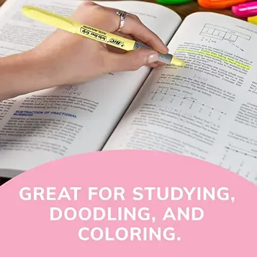 Highlighting just got easier with the BIC Brite Liner Grip Pocket Highlighter's super bright fluorescent ink and textured rubber grip for added comfort. Offered in an assortment of barrel colors, this highlighter comes in a convenient 6-pack. Whether you're highlighting large areas of text or making precise underlines, its chisel tip is designed to meet your every highlighting need. Plus, it won't dry out if the cap is left off for up to eight hours, giving you peace of mind.