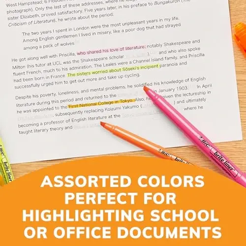 BIC Brite Liner pink highlighters are suitable for school, office and home use. Ideal for note taking, studying, organization, coloring and creative projects. The 12-pack is an economical solution for long-term use.