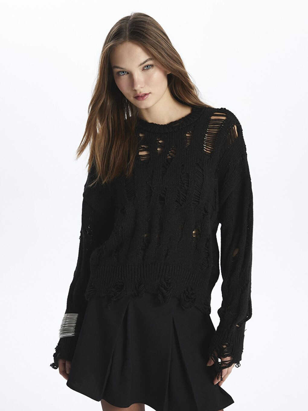 Combining style and comfort, the Sicily Bicycle Collar Ripped Detail Knit Sweater will be a staple in your wardrobe. Made from soft and high-quality knit fabric, the sweater provides comfortable warmth for everyday wear, while its bicycle collar and ripped details offer a stylish look. It's an ideal choice for those who want a stylish and comfortable look, especially during the autumn and winter months.