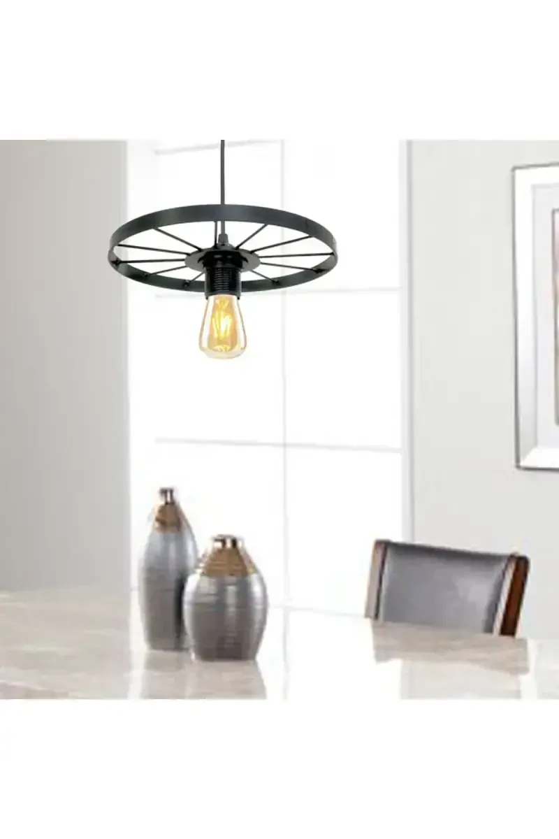 Bike Wheel Pendant Single Chandelier Wrought Iron Bar Hotel Restaurant Metal Retro Ceiling Lamp - Add a unique and striking touch to your spaces with Black. This chandelier, a perfect combination of industrial design and retro aesthetics, is not just a lighting tool, but also a work of art that adds character and style to your living spaces. Wrought iron details and bicycle wheel design allow you to create a remarkable atmosphere away from the ordinary.Product DescriptionBike Wheel Pendant Single Chandelier is a versatile lighting solution that combines modern and classic elements to suit all kinds of decorations. Its black metal frame gives the chandelier both durability and a sophisticated look. This chandelier creates a warm and inviting atmosphere in your bar, welcomes your guests impressively in your hotel lobby, and offers an unforgettable ambiance in your restaurant. It is also an ideal option for creating a unique atmosphere in your home. It will be an indispensable piece especially for those who love retro, industrial or rustic style. It is made of high quality materials and offers long-lasting use. The single design of the pendant chandelier allows you to focus the light and illuminate a specific area, while also meeting your general lighting needs in a stylish way. The bicycle wheel motif adds dynamism and movement to the space, while the wrought iron details offer elegance and finesse. This chandelier is not just a lighting product, but also a decorative object that adds value to your space. In addition to its aesthetic appearance, it also stands out with its practical use. Thanks to its easy installation, it is ready for use in a short time. If you want to create a different atmosphere in your home, workplace or commercial spaces, the Bike Wheel Pendant Single Chandelier is for you. The robustness of the metal and the originality of the design offer a product that you can enjoy for many years. Choose this unique chandelier to add not only light but also style and character to your spaces. This chandelier will completely change the atmosphere of your space and provide an unforgettable experience for your guests. This chandelier, which combines the nobility of black and the durability of metal, has been carefully designed with every detail.Product Features* Design: Retro design with bicycle wheel and wrought iron details* Material: High quality metal (wrought iron)* Color: Black* Type: Single pendant chandelier* Usage Areas: Bar, hotel, restaurant, home (living room, kitchen, dining room, etc.)Additional InformationBulb is not included. It is suitable for use with E27 socket bulbs. It offers easy installation. It is recommended to wipe it with a damp cloth for cleaning.