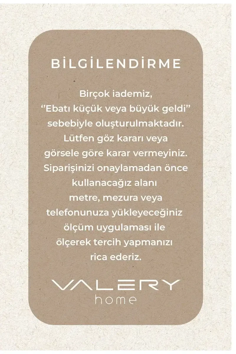 Bring aesthetics and comfort to your living spaces with the Bienal VL Fringed Modern Woven Carpet. Made of high-quality materials, this carpet adds elegance and warmth to every corner of your home, from the living room to the hall, from the kitchen to the bedroom. With its modern design and elegant fringe details, this carpet will add a sophisticated touch to your home decoration. This carpet, offered with Valery Home assurance, maintains its original beauty for years with its long-lasting and durable structure.Our carpets are produced with a special weaving technique and have a iridescent appearance. Thanks to this feature, the color tones change when the carpet is viewed from different angles, thus adding a dynamic atmosphere to your space. It offers a darker and matte appearance when viewed from below, while creating a lighter and brighter effect when viewed from above. This unique feature ensures that the carpet always looks different and interesting.Slight color changes may occur due to light differences in studio shots, but the real colors of the carpet will fascinate you when it arrives at your home. This carpet, which will completely change the atmosphere of the room you will use, adapts to all kinds of furniture and decoration styles with its modern design.This carpet, produced on state-of-the-art carpet weaving looms, is created with the perfect combination of polypropylene and polyester yarns. In this way, it has both a durable and soft texture. Walking on the carpet is extremely comfortable thanks to its 7.5 mm pile height. In addition, our carpet absolutely does not shed pile or fluff, making it an ideal option for allergy sufferers and those who care about hygiene.Bienal VL Fringed Modern Woven Carpet is also user-friendly thanks to its easy-to-clean feature. It does not collect hair or fluff, which makes sweeping very easy. It is important to pay attention to our washing and usage recommendations to ensure the long life of your carpet. Instead of washing it at home, you can wipe it with a soft cloth using carpet shampoo suitable for natural yarns. When you give it to the washing center, you should definitely emphasize that heavy chemical cleaners containing SODIUM HYDROXIDE (CAUSTIC SODA) should not be used. It should not be washed in the washing machine.In order to prevent the dust that accumulates on the carpet over time from entering between the threads, it should be vacuumed at regular intervals. Vacuum slowly in the direction of the yarns with a vacuum cleaner. Never beat or hit it with a hard object. Avoid leaving it in direct sunlight for a long time and protect it from moisture. Immediately absorb liquid stains spilled on the carpet with a paper towel without wasting time. Never rub the stain by pressing on it during cleaning, as this will cause the stain to penetrate further into the carpet. Avoid using excessive water and shampoo during carpet cleaning. Do not pull loops from your carpet, cut off the loops that have come out from the carpet surface. You can gently wipe your carpet with a cloth, which will provide easier cleaning for our valued customers. Bienal VL Fringed Modern Woven Carpet is an ideal choice to add elegance and comfort to every corner of your home.