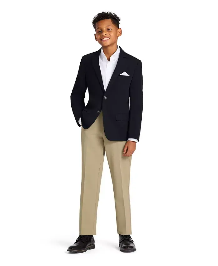 Your child will be stylish and comfortable in any setting with Big Boys TH Flex Machine Washable Stretch Performance Dress Pants! Designed with Tommy Hilfiger quality, these pants are a perfect choice for special occasions, school events, and weekend outings. Thanks to their flexible fabric, your child can move freely all day long, enjoying comfort without sacrificing style.The performance-oriented design sets these pants apart from the rest. Their flexible structure adapts to your child's active lifestyle, while the classic cut helps them fit into any environment. The full-length waistband, hook-and-eye closures, and zipper detail ensure the pants fit securely and comfortably. Belt loops offer different belt options to complete your child's style.Carefully designed details make these pants special. Two front slant pockets provide a handy area for carrying small items, while the pressed front provides a neat and stylish look at all times. The 8% spandex content in the fabric provides maximum comfort and freedom of movement. This allows your child to feel comfortable and confident throughout the day.Big Boys TH Flex Performance Dress Pants are not only stylish but also practical. Thanks to their machine washable feature, they can be easily cleaned and cared for. This is a great advantage for busy parents. They are also an ideal choice for school uniforms, so your child can look both stylish and compliant with school rules.Manufactured with Tommy Hilfiger quality, these pants are long-lasting and durable. The polyester and spandex blend fabric offers both comfort and durability. This allows your child to enjoy their pants for a long time. These imported pants are manufactured to the highest quality standards.Add style and comfort to your child's wardrobe with Big Boys TH Flex Performance Dress Pants. These pants will make your child feel confident and comfortable in any setting. They are a perfect choice for both special occasions and everyday use. Complete your child's style with Tommy Hilfiger quality! Make them special, make a difference!