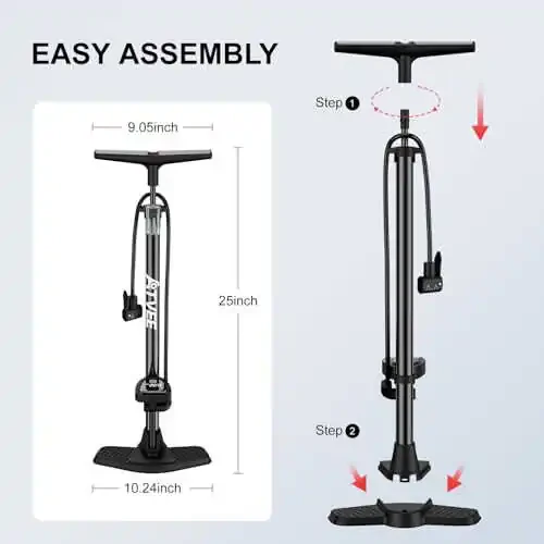 Bike Pump is not just a bicycle pump, but a versatile tool that will enhance your riding experience. This full-size 25-inch high bicycle pump allows you to inflate your tires quickly and efficiently by providing high pressure up to 160 PSI. Thanks to its 30% faster inflation feature compared to other traditional pumps, you can do more in less time and focus on your riding pleasure. Its ergonomic design and comfortable grip make the pumping process effortless, while its durable construction offers long-lasting use. Thanks to its head compatible with both Presta and Schrader valves, you can easily inflate different types of bicycle tires, balls, inflatable pool toys and more. Now you can meet all your inflation needs with a single pump without the need for different adapters. The integrated PSI gauge allows you to accurately measure your tire pressure, increasing your driving comfort and safety. Properly inflated tires mean better road holding, less rolling resistance and longer tire life. Thanks to its compact design, it is easy to carry and store. It can easily fit in your car trunk, garage or bicycle bag. It is a reliable pump that you can always have with you in emergencies or travels. Get ready to ride with Bike Pump!