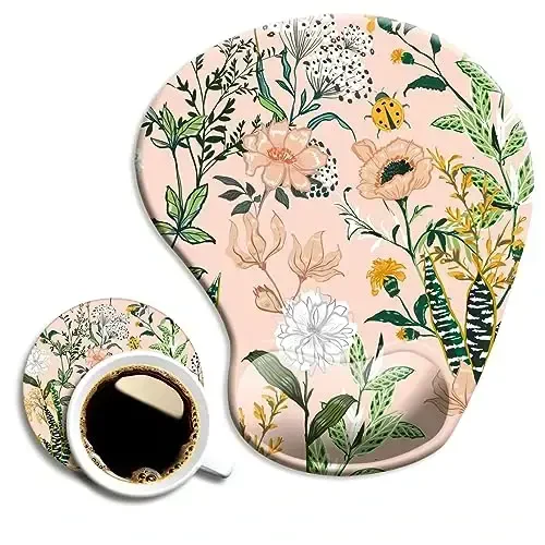 ergonomic mouse pad, wrist support, non-slip base, pink, office, home, work, study, pain relief, easy typing