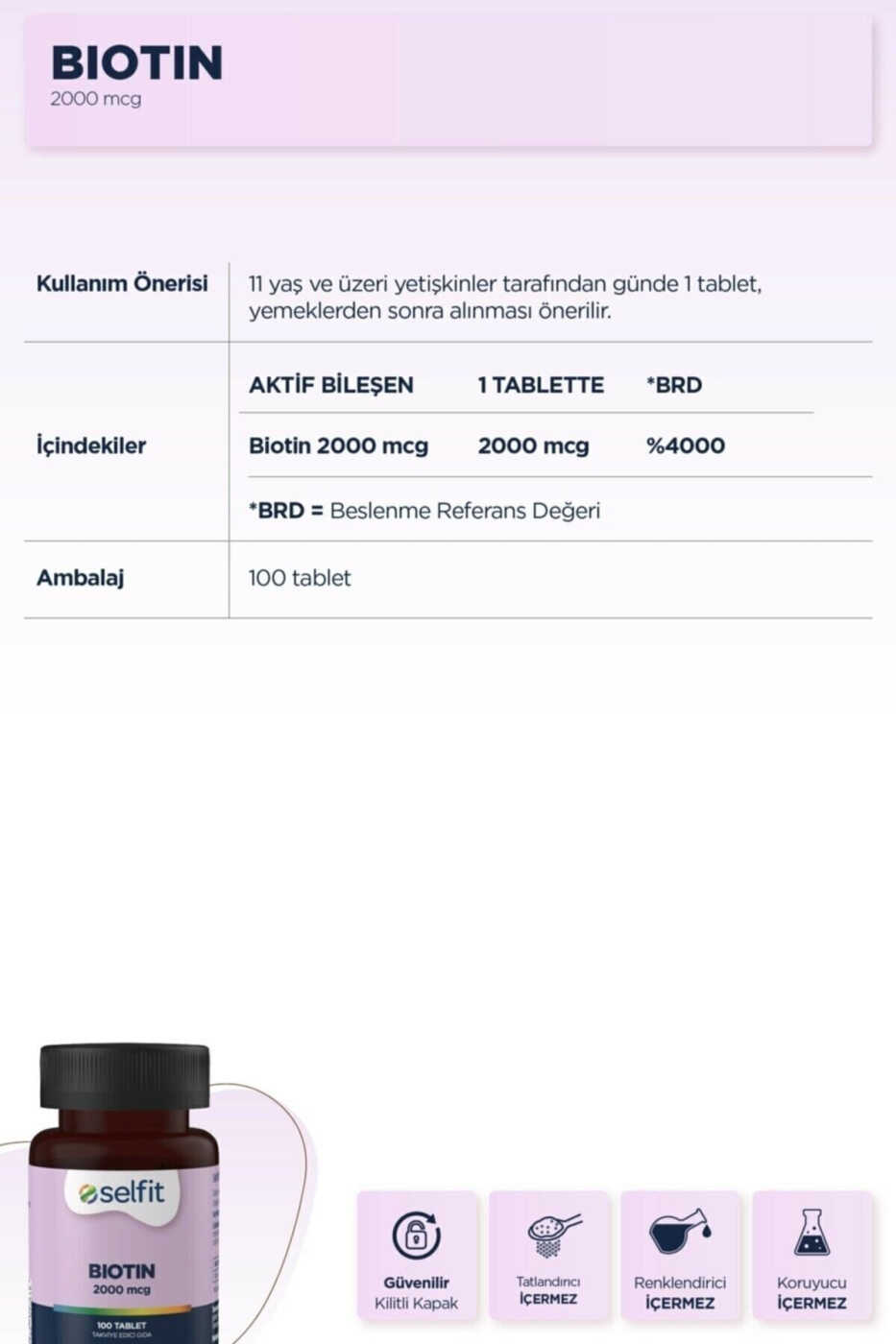 • Contains 2000 mcg Biotin per tablet.