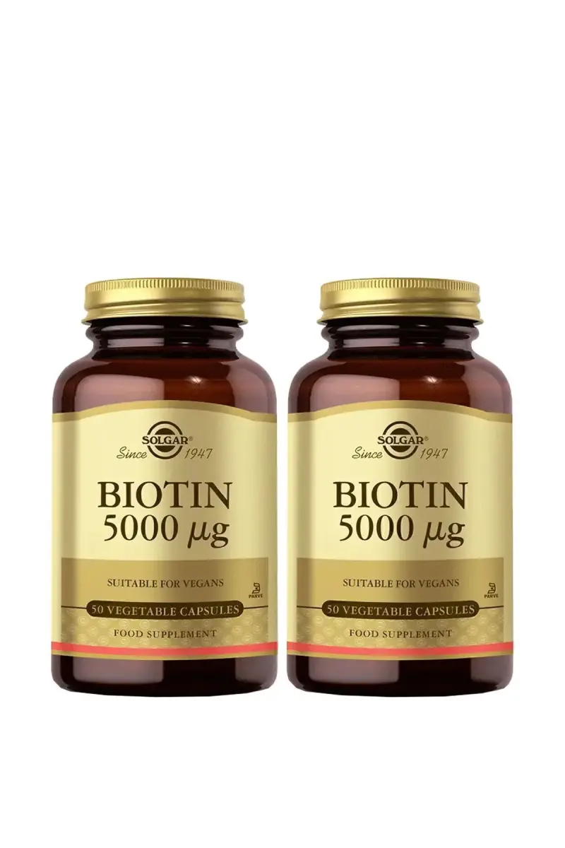 Biotin bu soch, teri va tirnoq sog'lig'i uchun muhim bo'lgan B vitamini bo'lib, u organizmning energiya ishlab chiqarishiga ham hissa qo'shadi. Biotin 5000 mcg 50 Vegeterian Kapsulalar 2 Paket sizning kundalik biotin ehtiyojlaringizni qondirishga yordam berish uchun ishlab chiqilgan. Har bir kapsula 5000 mikrogramm sof biotinni o'z ichiga oladi va vegeterian kapsula shaklida taqdim etiladi.