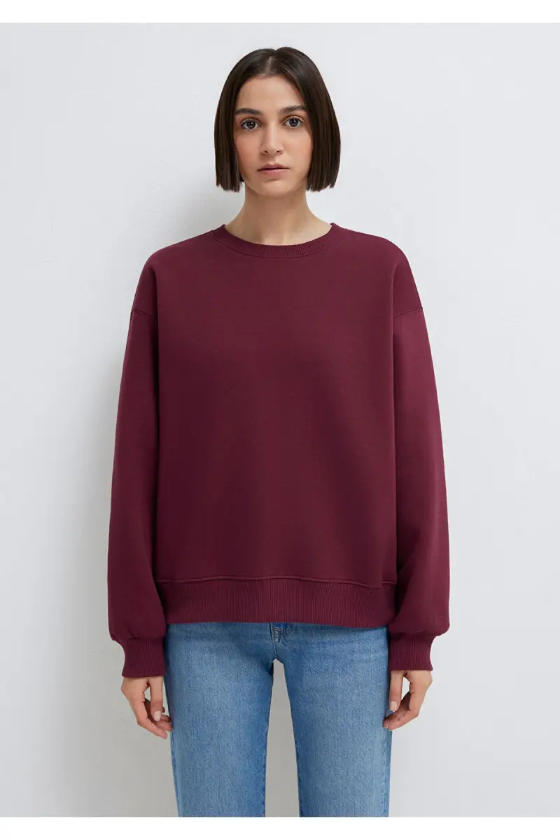 Bisiklet Yaka Bordo Basic Sweatshirt 1610198-70415-Bordo