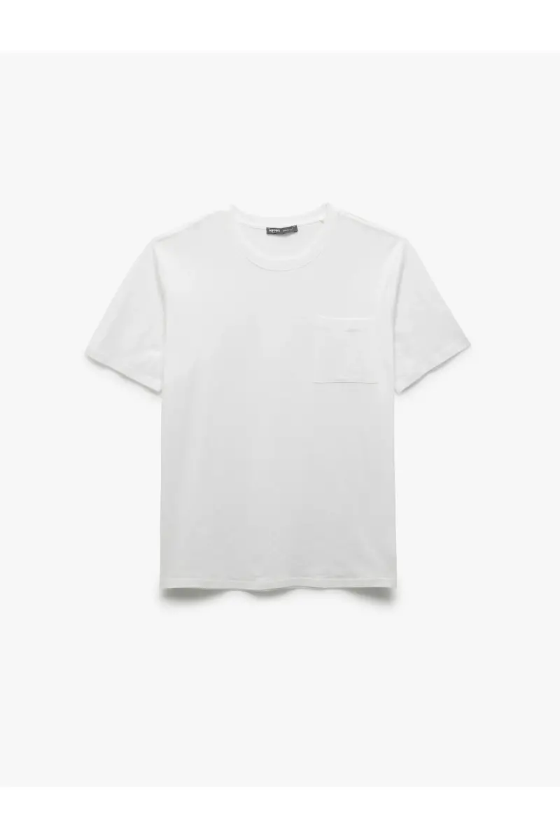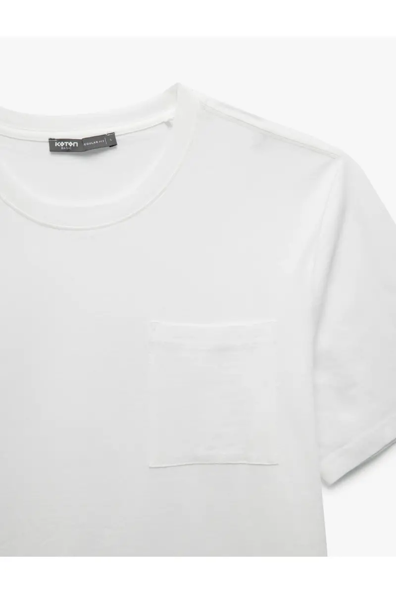 Bisiklet Yaka Cepli Regular Fit Pamuklu Kısa Kollu Erkek Basic Tişört-Beyaz