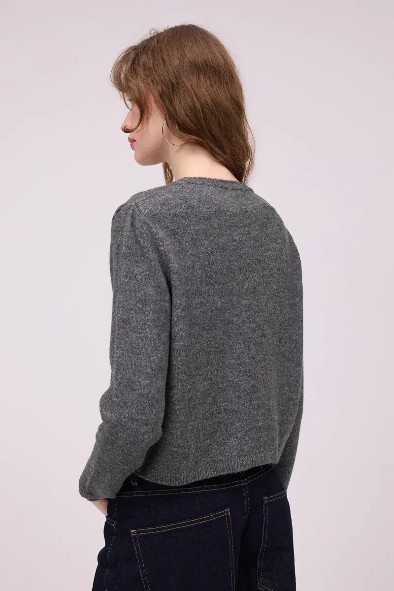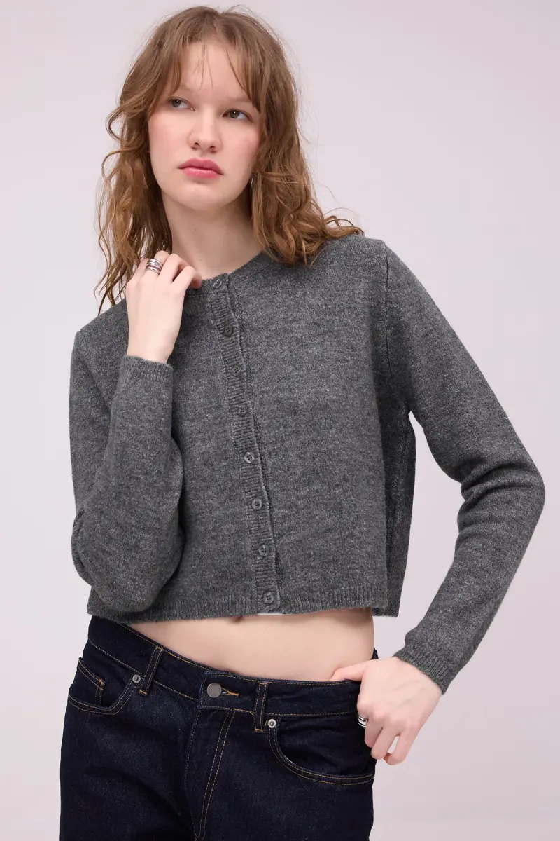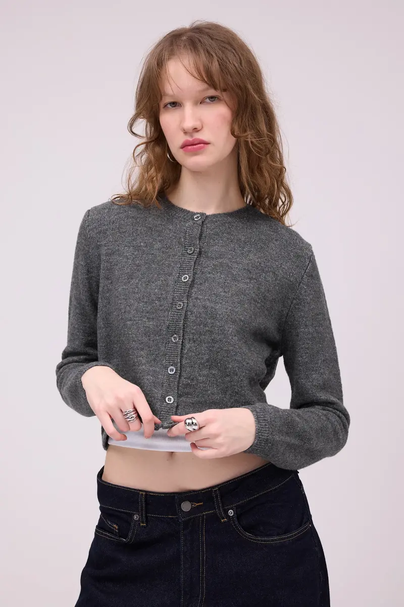 Bisiklet Yaka Düğmeli Triko Hırka H3364-A10-Antrasit