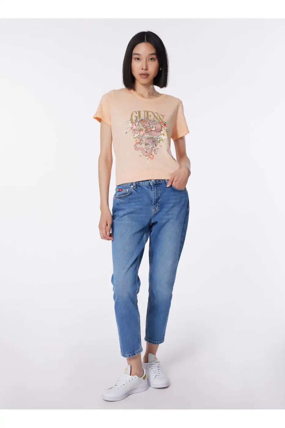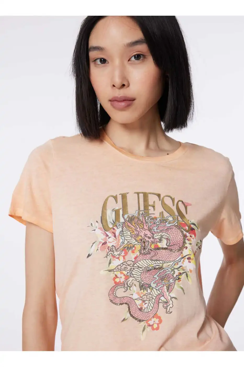 Женская футболка оранжевого цвета с круглым вырезом - W4GI50K9SN1-F3F9
