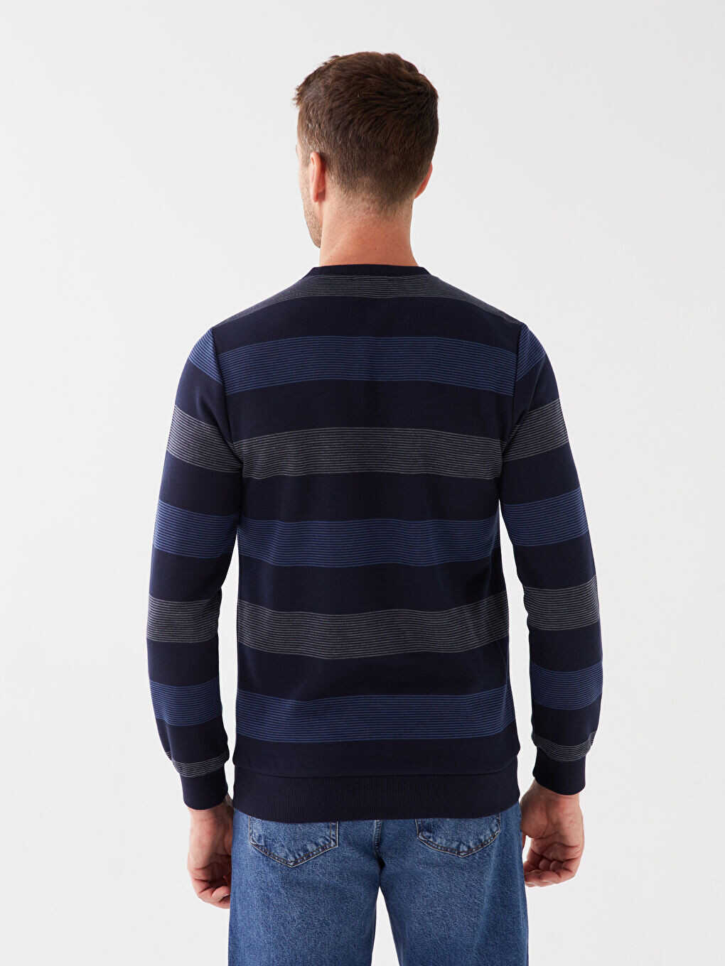 men's sweatshirt, striped sweatshirt, crew neck, long sleeves, indigo, relaxed fit, LC Waikiki, interlock fabric, plus size, men's clothing