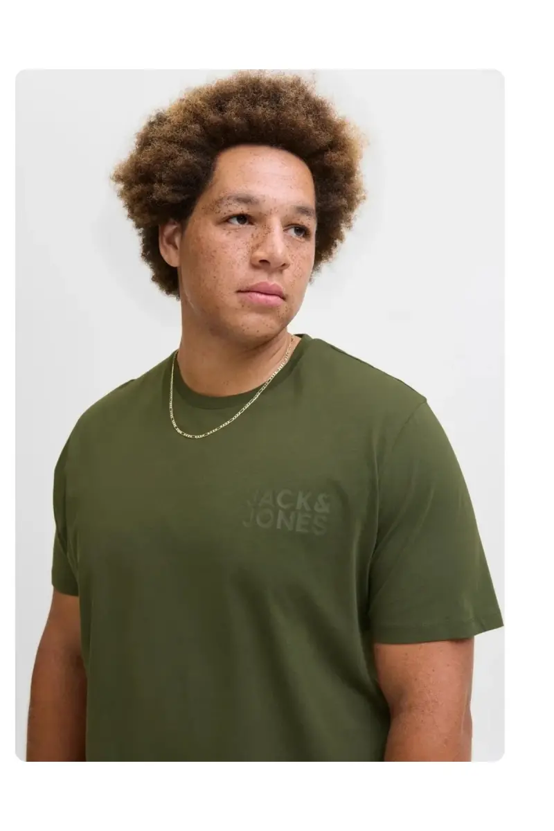 Bisiklet Yuvarlak Yaka Logo Baskili Büyük Battal Beden Tisört Haki-Haki