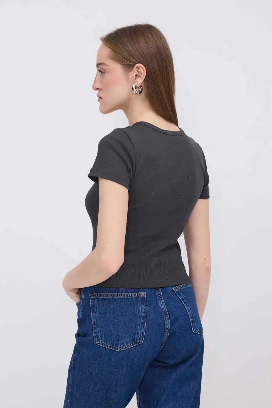 Bismiklet Yaka Antrasit T-shirt | Qulay Paxtali Asosiy Futbolka
