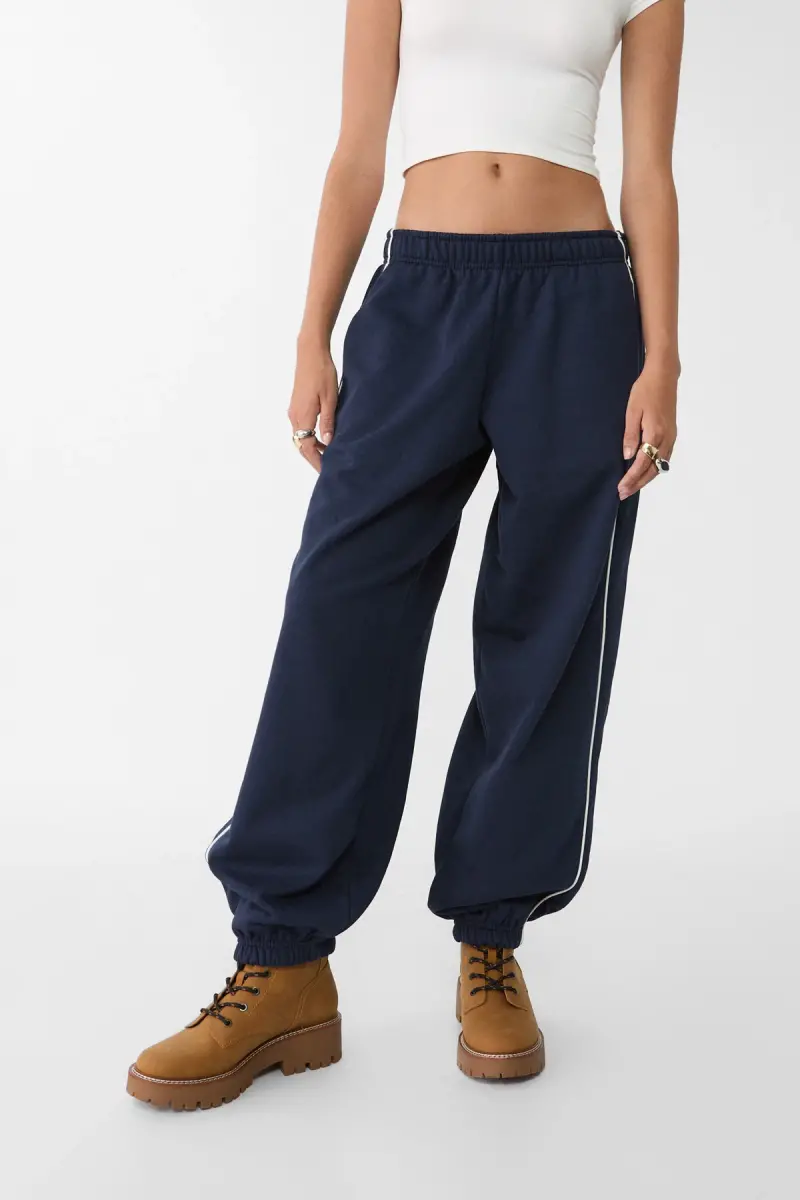 Bu ürün Stradivarius tarafından gönderilecektir.Kampanya fiyatından satılmak üzere 5 adetten fazla stok sunulmuştur.Bir ürün, birden fazla satıcı tarafından satılabilir. Birden fazla satıcı tarafından satışa sunulan ürünlerin satıcıları ürün için belirledikleri fiyata, satıcı puanlarına, teslimat statülerine, ürünlerdeki promosyonlara, kargonun bedava olup olmamasına ve ürünlerin hızlı teslimat ile teslim edilip edilememesine, ürünlerin stok ve kategorileri bilgilerine göre sıralanmaktadır.Bu üründen en fazla 10 adet sipariş verilebilir. 10 adedin üzerindeki siparişleri Trendyol iptal etme hakkını saklı tutar. Belirlenen bu limit kurumsal siparişlerde geçerli olmayıp, kurumsal siparişler için farklı limitler belirlenebilmektedir.15 gün içinde ücretsiz iade. Detaylı bilgi için [page="return_conditions"]tıklayın .Rahat ve şık bir görünüm için ideal, jogger pantolon tasarımıYüksek kaliteli pamuklu kumaşı ile gün boyu konfor sunarDüz kesimi sayesinde her türlü üst giyimle kolayca kombinlenebilirSportif aktiviteler için mükemmel bir seçim olan bu pantolon, hareket özgürlüğü sağlarYüksek bel tasarımı ile vücut hatlarını zarifçe sarar ve şık bir siluet oluştururUzun boyu sayesinde bacakları saran ve koruyan bir yapıya sahiptirBiyeli detayları ile modern ve dinamik bir görünüm kazandırırDokuma kumaş tipi, dayanıklılığı arttırarak uzun süreli kullanım imkanı sunarDüz deseniyle sadelikten yana olanların tercihi olacak şekilde tasarlanmıştırHer yaş grubuna hitap eden geniş kullanım yelpazesi ile herkes için uygundur
