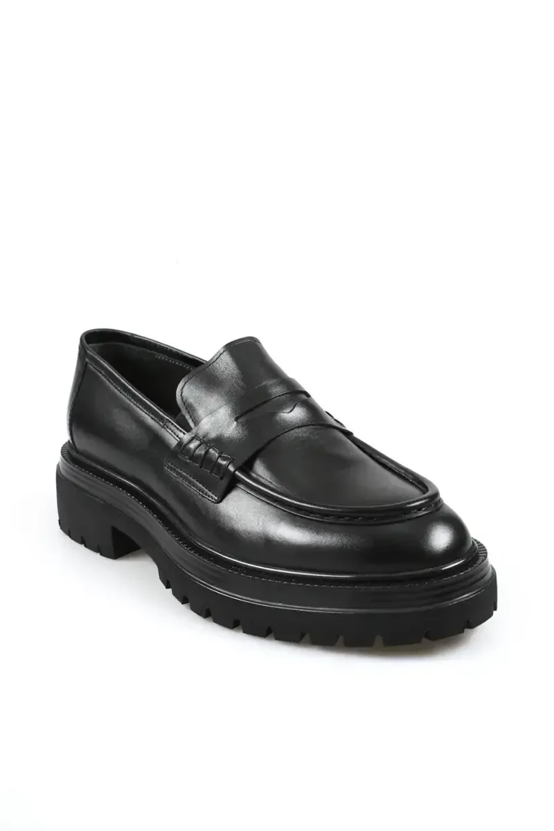 Black 100% Leather High Platform Loafer Shoes combine elegance and comfort, featuring a modern and unique design. Made from 100% genuine leather, they offer long-lasting use. The high platform not only adds a different dimension to your style but also provides all-day comfort. The classic elegance of the loafer model, combined with the modern touch of the high platform, offers a versatile shoe option that easily adapts to any outfit. Whether you prefer them with everyday clothes or a more chic combination, these loafer shoes will always complement your style.**Product Description**Black 100% Leather High Platform Loafer Shoes are a timeless piece that should be in every modern man's and woman's wardrobe. The 100% genuine leather used in the production of the shoe offers superior quality and durability, while also allowing your feet to breathe, providing a comfortable wearing experience throughout the day. The high platform not only adds a different touch to your style but also protects your foot health by providing extra support while walking or standing. The classic lines of the loafer design perfectly complement the modern and assertive stance of the high platform. This shoe can accompany you in any environment, from business life to social events, from daily use to special occasions. It allows you to create a casual look with jeans or a sophisticated style with a chic skirt or trousers. The elegance of the black color increases the versatility of the shoe, allowing you to easily combine it with clothes in different colors and patterns. The soft lining used inside the shoe hugs your feet and ensures you are comfortable all day long. The special design in the sole structure offers a safe walking experience thanks to its anti-slip feature. The attention to detail in the stitching emphasizes the quality and elegance of the shoe, while also guaranteeing its long-lasting use. Black 100% Leather High Platform Loafer Shoes are not just a shoe, but also an accessory that reflects your style and gives you confidence. It is an ideal choice to make a difference with every step and highlight your style. Enjoy being both stylish and comfortable with these shoes. These loafer shoes, which are a perfect choice to add a modern and sophisticated touch to your style, will be an indispensable part of your wardrobe. This shoe, which will complement your elegance as much in daily use as in special occasions, allows you to always stand out by offering comfort and style together. Choose Black 100% Leather High Platform Loafer Shoes to create an unforgettable style and attract attention in any environment.**Product Features*** 100% Genuine Leather* High Platform* Loafer Model* Stylish and Modern Design* Suitable for Daily and Special Use* Anti-Slip Sole* Comfortable Inner Lining* Long-Lasting Use* Easy to Combine* Elegance of Black Color**Additional Information**It is recommended to regularly clean and protect the shoes with leather care products for long-lasting use. Please make sure you measure your foot size correctly before purchasing. To protect your product as on the first day, store it in its box or dust bag when not in use. Avoid contact of your product with water and be careful not to leave it in humid environments.