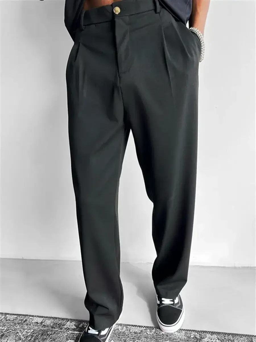Baggy Fit Fabric Pants Black - Style and Comfort Combined