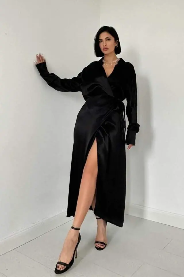 Experience elegance and comfort with the Black Belted Shirt Dress. This special design is a perfect choice for both daily use and your special occasions. The shirt collar and elegant belt detail add a modern and sophisticated touch to the dress, while the comfortable cut offers all-day comfort. Reflecting the nobility of black, this dress will be an indispensable part of your wardrobe. Whether you make a stylish combination with high heels or create a more comfortable style with sneakers, this dress adapts to any environment. Thanks to the quality of its fabric, it offers long-lasting use. The product on the model is size M/38, and the model's measurements are as follows: Height: 165 cm, Weight: 55 kg, Bust: 90 cm, Waist: 72 cm, Hips: 100 cm. This information will help you choose the appropriate size. The Black Belted Shirt Dress is a timeless piece that appeals to every woman's style. You will always be eye-catching with this dress that will highlight your elegance and confidence. Discover this dress that will accompany you in every moment, from your daily activities to special invitations. This special design, which offers both comfort and elegance together, can be easily combined with other pieces in your wardrobe. You can personalize your style with your accessory choices and create a different look in every environment. The Black Belted Shirt Dress is not just a piece of clothing, but also a style statement. You will feel special and confident with this dress. This dress, which has been carefully designed in every detail, will enchant you with its quality and elegance. Do not miss this dress that will be the star of your wardrobe. This dress, which combines the timelessness of black and the modern lines of design, ensures that you always look stylish and elegant. Whether in business life or in your social activities, you will always dazzle with this dress. Thanks to the lightness of its fabric and comfortable cut, it offers comfortable use throughout the day. The Black Belted Shirt Dress is a candidate to be the indispensable of stylish women. Make a difference in every environment with this dress and let your style speak.