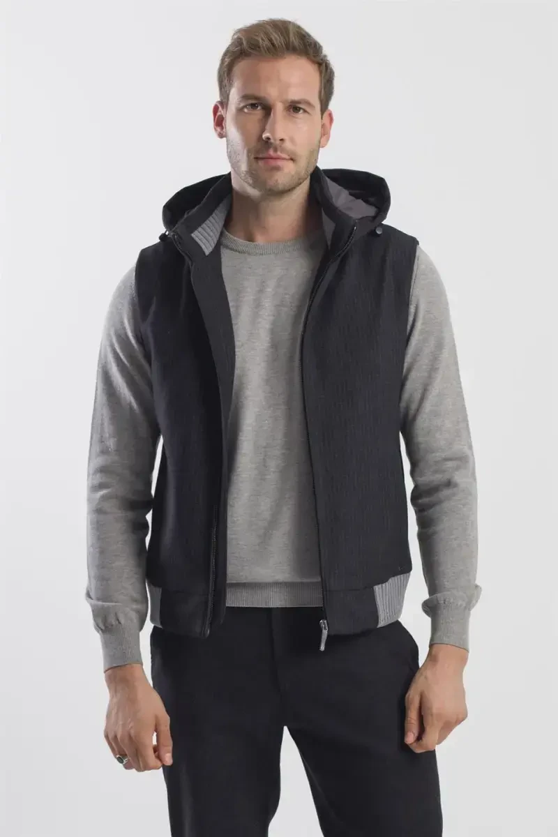 Black Comfort Fit Patterned Detachable Hooded Vest has a unique design that combines elegance and comfort. The comfort fit cut offers a comfortable use without squeezing your body, while its patterned exterior creates a striking appearance. One of the most important features of the vest is its detachable hood. You can easily attach and remove the hood when you need it, so you can adapt to different weather conditions and your style. The hood protects your head in rainy or windy weather, and you can get a lighter use by removing it in sunny weather. The outer surface of the vest is made of high quality and durable material. Thanks to this, it offers a long-lasting use and does not wear out easily. Its inner lining has a soft and warm structure, which keeps you comfortable in cold weather. The zipper on the front can be easily opened and closed, allowing you to put on and take off the vest practically. The quality of the zipper contributes to the overall durability of the vest. In addition, the pockets on the sides of the vest offer useful areas where you can safely store your phone, keys or other small items. The depth of the pockets prevents your belongings from falling out and provides you with a practical use. This vest can easily adapt to different combinations. You can get a comfortable look with jeans and sneakers in daily use. For a more stylish combination, you can combine it with fabric pants and boots. The black color of the vest adapts to all kinds of clothes and offers you a wide combination freedom. You can wear it with a t-shirt, shirt or sweater. In any case, it will complete your style and add a unique touch to you. Black Comfort Fit Patterned Detachable Hooded Vest is not just a garment, but also a style statement. It will be one of the most loved pieces of your wardrobe and will always offer you a stylish and comfortable look.