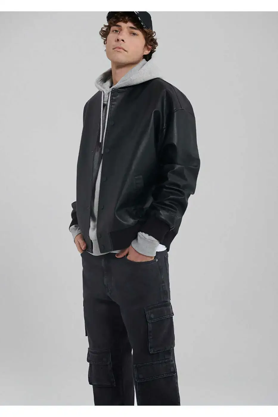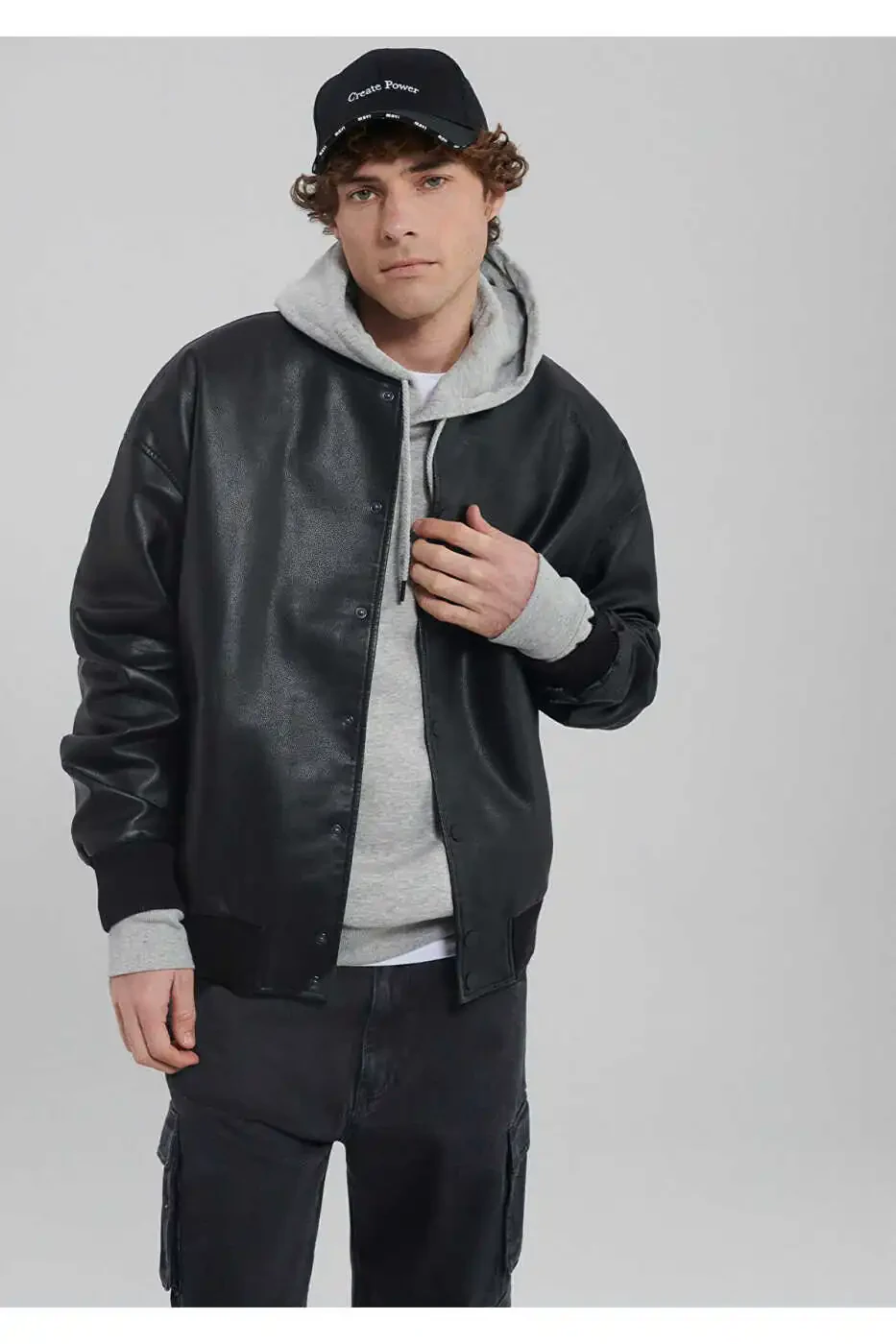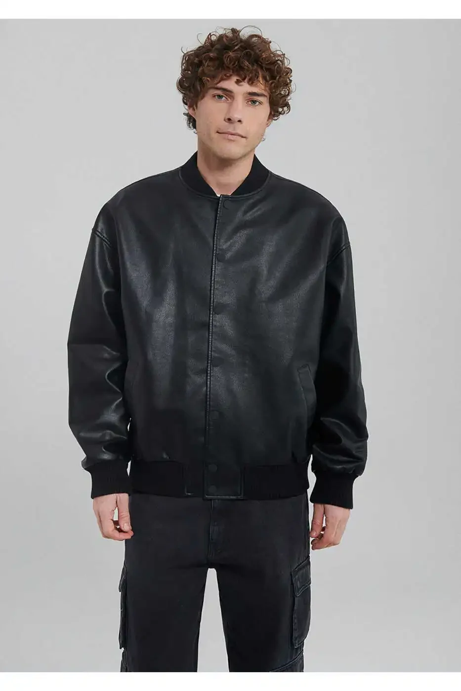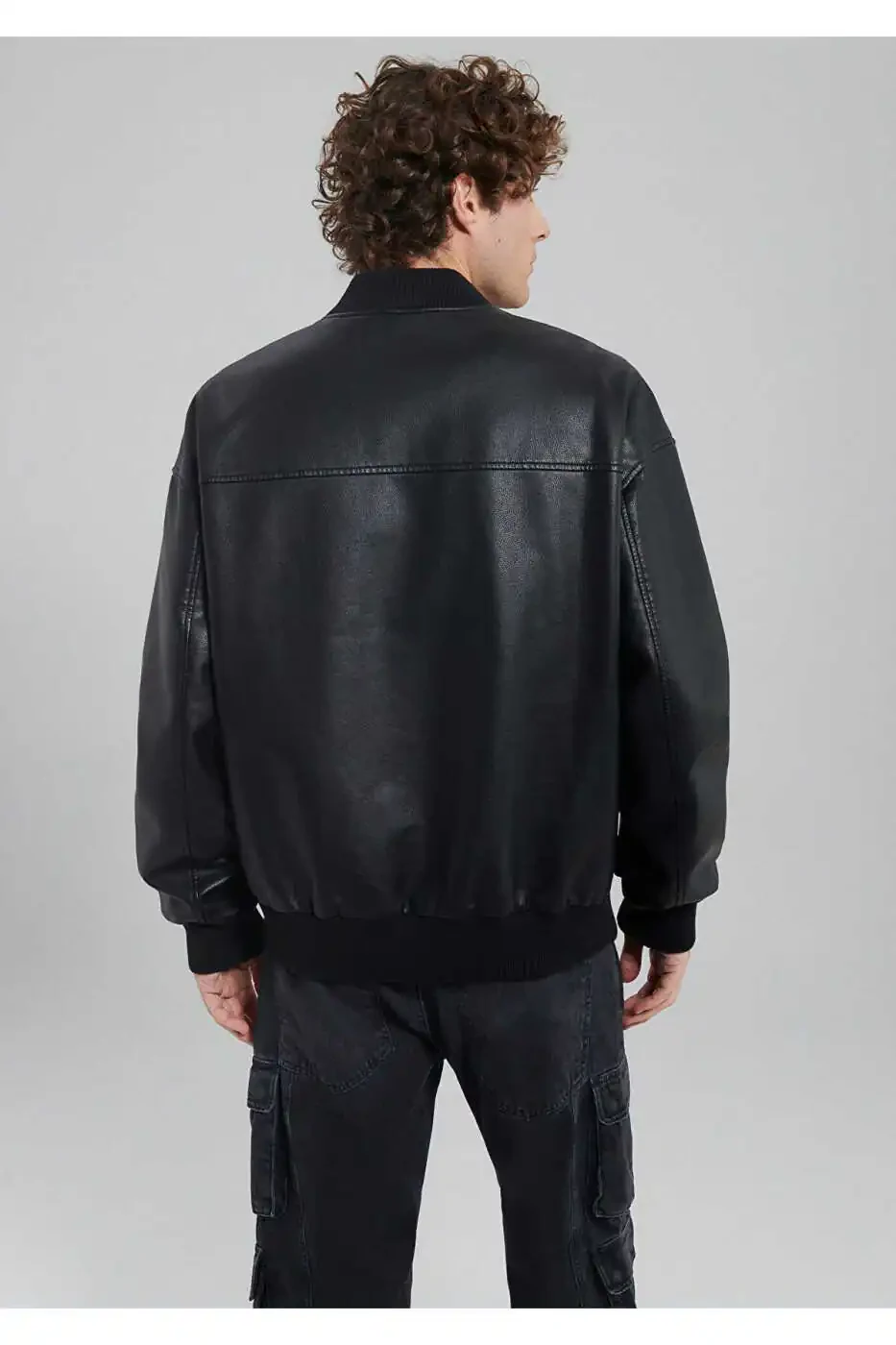 Combining style and comfort, this black faux leather bomber jacket will be an indispensable part of your wardrobe! Its oversized and wide fit provides a comfortable style, while its stylish look will ensure you stand out in any environment. Made from high-quality faux leather, the jacket will delight you with its durability and long-lasting use. An ideal choice to create a stylish touch to your casual combinations or to achieve an elegant look on special occasions. Order now and add elegance to your style!