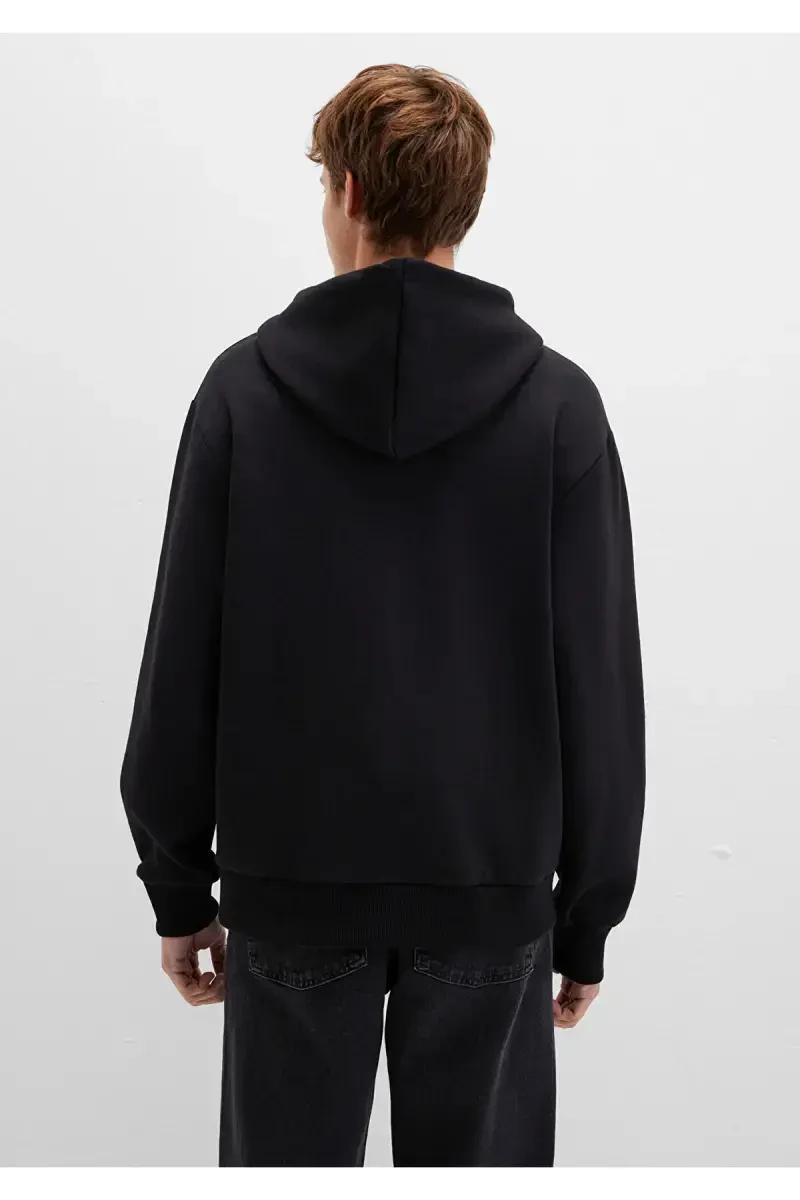 Ideal for a stylish and comfortable look, the Black Hoodie Sweatshirt with Logo and Zipper is a great way to express your style in your everyday wear. Made from soft and high-quality fabric, this sweatshirt provides comfort in any weather. The stylish logo on the front adds a modern touch to its design.