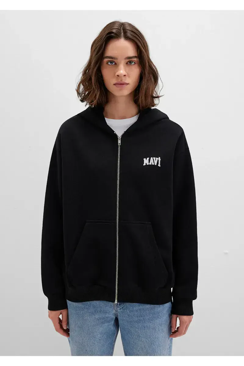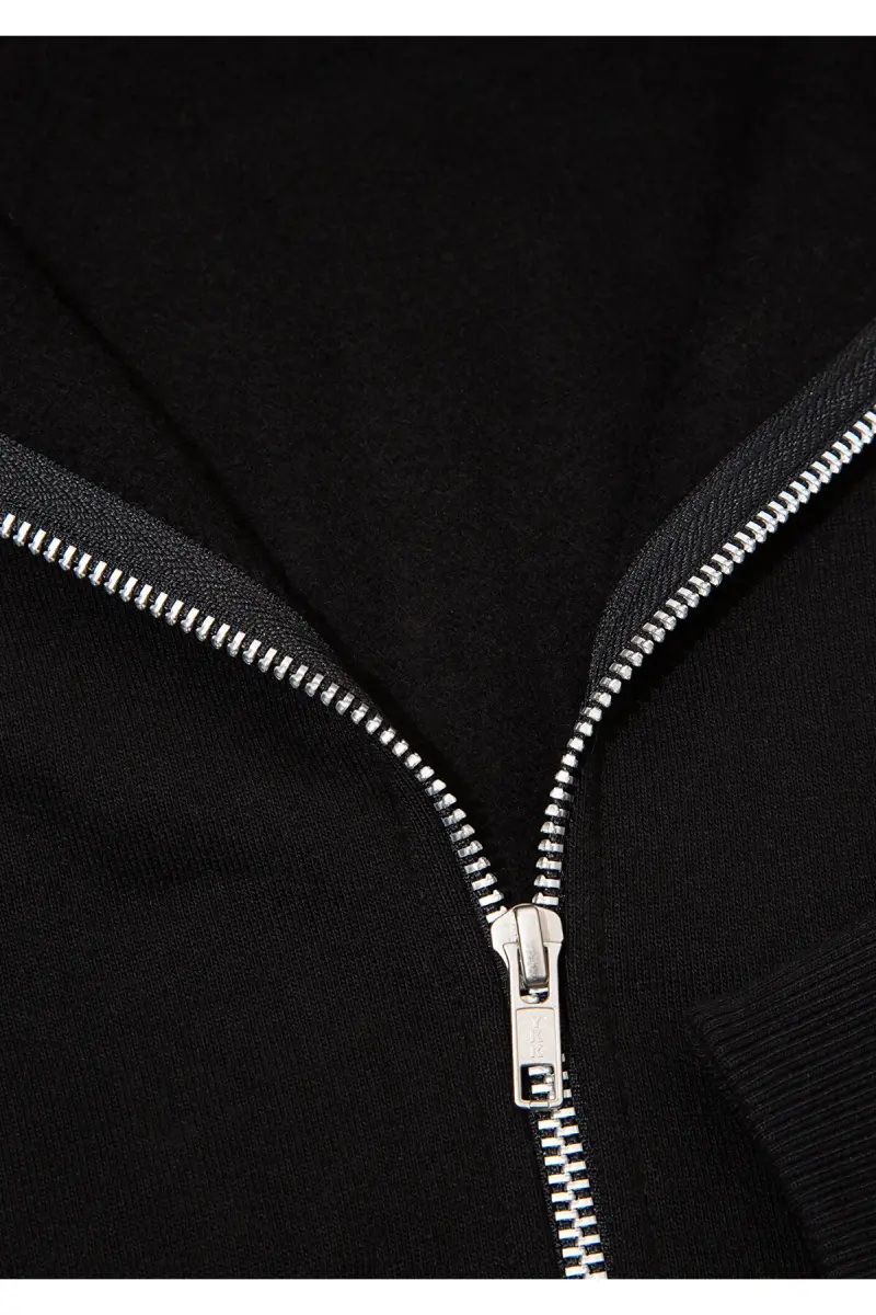 Choose the Logo Printed Hooded Zippered Black Sweatshirt for a stylish and comfortable look in your daily life, sports activities or meetings with friends.