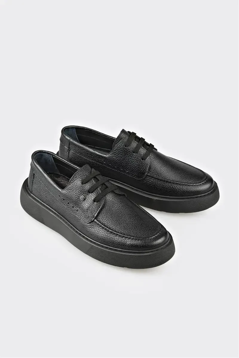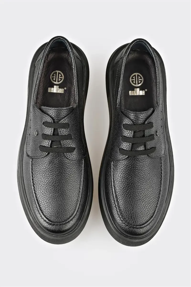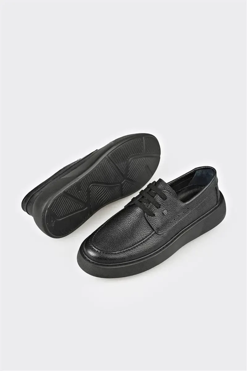 Designed for modern men who seek both elegance and comfort, the Black Leather Men's Daily Shoes are an ideal option that you can easily use in daily life. Made with genuine leather material, this shoe attracts attention with both its durability and stylish appearance. The 14 cm short heel height offers a comfortable walking experience throughout the day, while the flat heel structure ensures a balanced step. The genuine leather used in the insole of the shoe protects your foot health, while the EVA sole material provides lightness and flexibility, offering maximum comfort in every step. With its simple and stylish plain patterned design, it perfectly matches any outfit. This shoe will provide you with a stylish and comfortable look both in the office and in weekend activities. Made with quality workmanship and materials, the Black Leather Men's Daily Shoes are an ideal choice for long-term use. Thanks to its breathable genuine leather lining, your feet will stay fresh all day long, while the durable upper material extends the life of the shoe. You can easily prefer this stylish and comfortable shoe in casual environments and daily use, it will be one of the indispensable parts of your wardrobe. Moreover, this product is waiting for you with its campaign price and limited stocks! Order now, don't miss this opportunity.