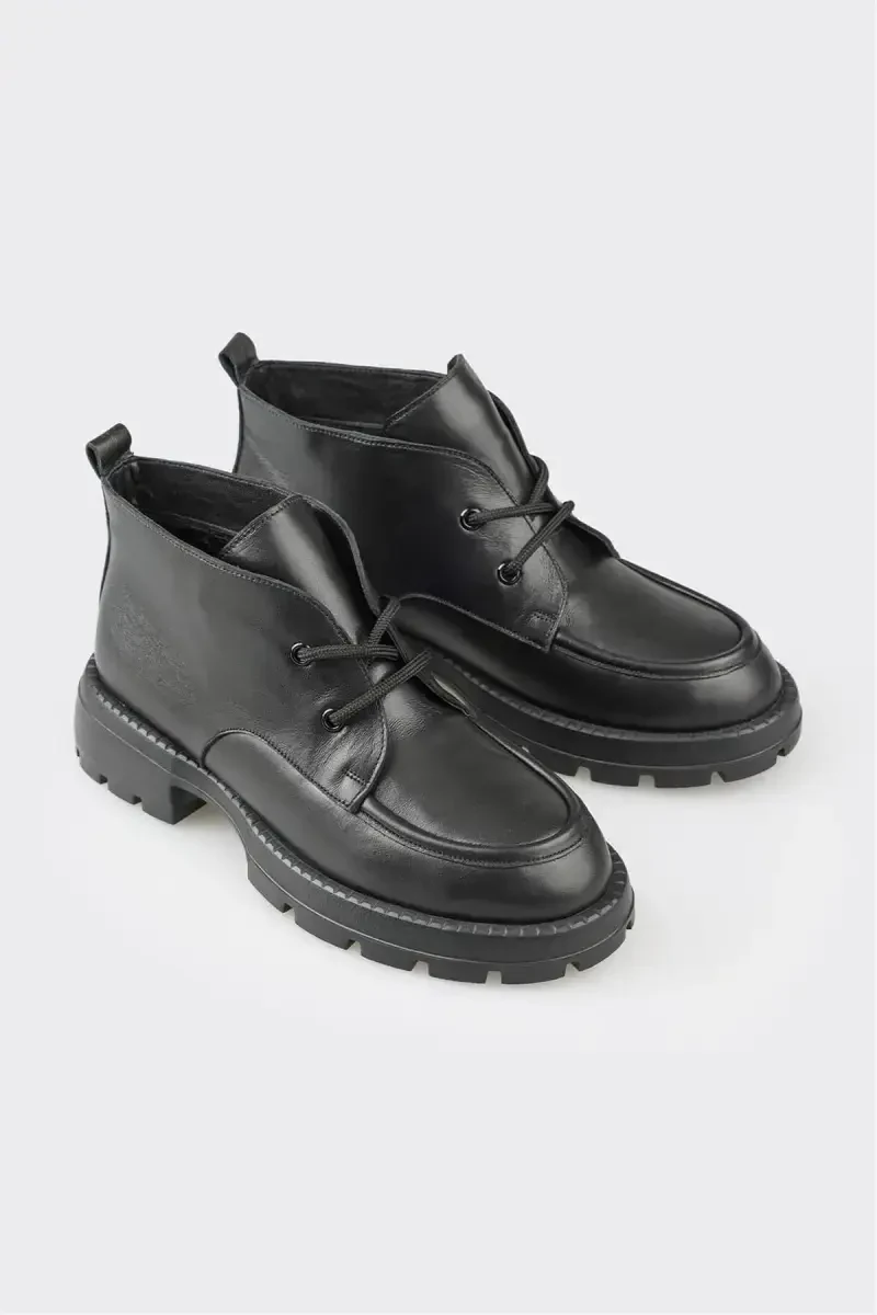 Combine your style and comfort with Black Leather Women's Daily Boots. This boot is a candidate to be an indispensable part of the modern woman's daily life. Made of genuine leather, this boot offers long-lasting use and superior quality. It will make your feet feel a luxurious touch with every step. Thanks to the warm-keeping textile material used in the inner lining, your feet will stay warm even in cold weather. Ideal for daily use, this boot accompanies you in the hustle and bustle of city life, while allowing you not to compromise on your elegance. The 3 cm heel height supports both comfort and an elegant stance. This height minimizes the feeling of fatigue even if you stand all day. The sole of the boot is made of non-slip rubber, which provides you with a safe walking experience on all kinds of ground. You don't have to worry even on wet or slippery surfaces. The lace-up and zippered closure system allows you to easily put on and take off the boot. In addition, thanks to the laces, you can adjust the boot according to your foot structure and achieve a perfect fit. The zipper detail increases the elegance and modernity of the boot. Black Leather Women's Daily Boots attract attention not only with their comfort and convenience, but also with their stylish and elegant design. This boot, which you can easily combine with any outfit, will be one of the most popular pieces of your wardrobe. Whether you combine it with jeans, skirts or dresses, it will always complement your style. This boot is not just a shoe, but also an expression of a lifestyle. Enjoy being both stylish and comfortable with Black Leather Women's Daily Boots. This boot, where you will feel special with every step, is an investment that will accompany you for many years. Whether in business life, social activities, or daily outings, Black Leather Women's Daily Boots will always be with you and give you confidence. This boot will warm not only your feet but also your soul. It is an ideal choice for women who seek elegance, comfort and quality together. Make every day special with Black Leather Women's Daily Boots.