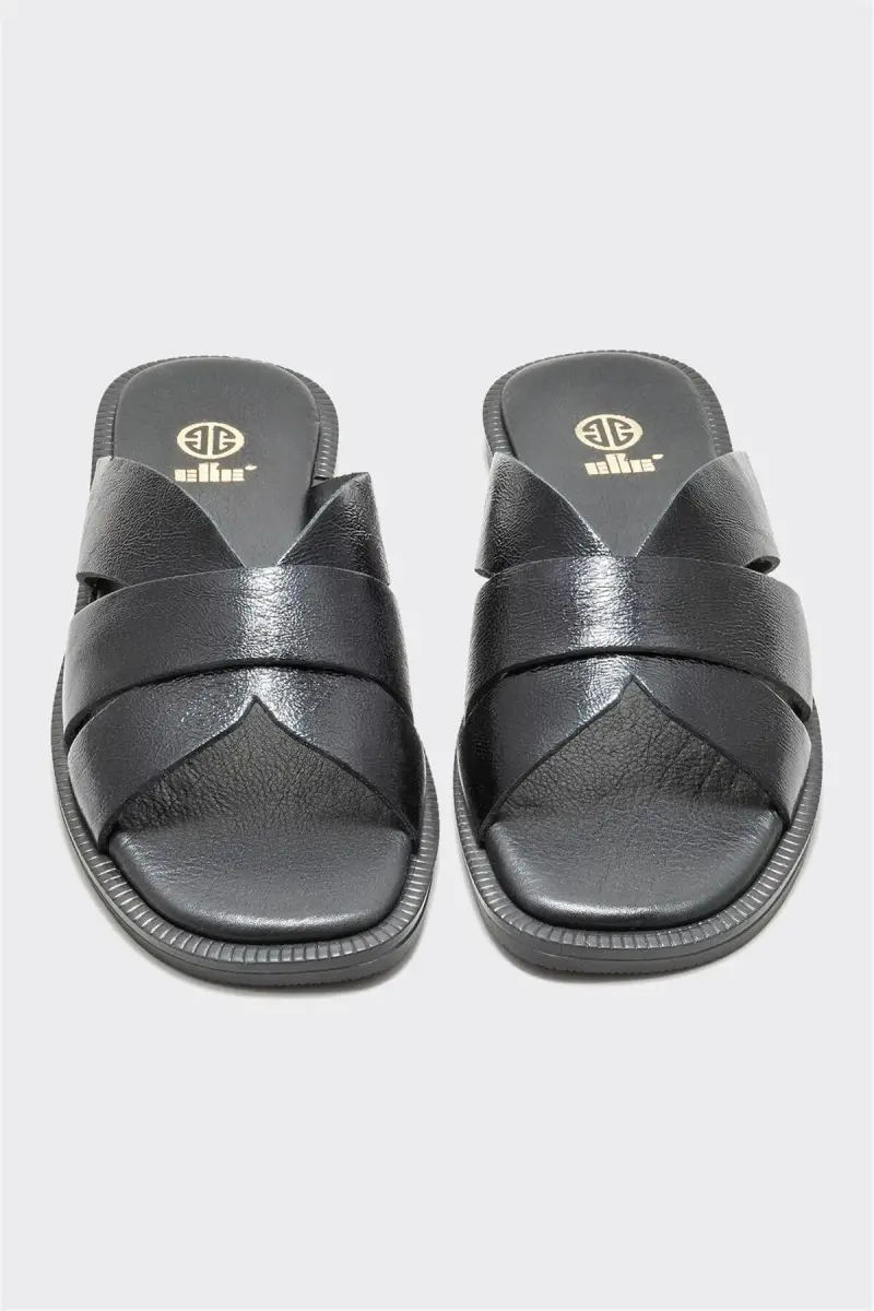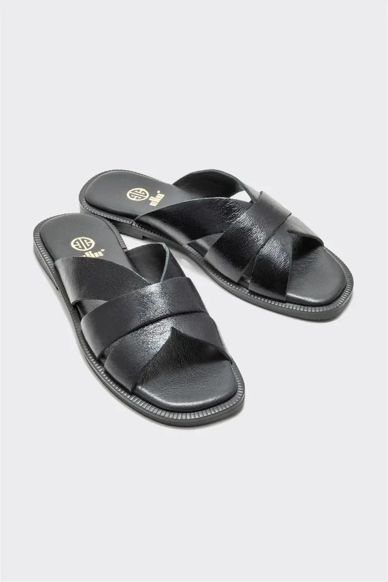 Black Leather Women's Flat Slippers are an excellent choice that combines elegance and comfort. Being made of genuine leather ensures the slipper is long-lasting and durable while prioritizing your foot health. The flat sole offers comfortable use throughout the day. It is ideal for both daily use and special occasions.Product DescriptionComplete your style with Black Leather Women's Flat Slippers. These elegant slippers accompany you every step of the way, offering modern design and superior comfort in one. The genuine leather material increases the quality and durability of the slipper while allowing your feet to breathe all day long. The noble stance of black can be easily combined with all kinds of outfits, making it an indispensable part of your wardrobe. Whether you are taking a coffee break in the city or relaxing at home, Black Leather Women's Flat Slippers help you maintain your elegance in any environment. Its ergonomically designed flat sole supports your feet and provides comfort even during long-term use. The inner surface of the slipper is also covered with soft leather, so your feet will not be irritated and you will have a comfortable experience all day long. Black Leather Women's Flat Slippers not only offer a stylish look but also care about your foot health. These slippers are a perfect choice for both daily use and special occasions. It can be easily combined with jeans, skirts, dresses, and even shorts. If you want to prioritize your comfort without sacrificing your elegance, Black Leather Women's Flat Slippers are for you. Reflect your style with every step with these slippers, which are candidates to be the most loved piece of your wardrobe. Black Leather Women's Flat Slippers are not just slippers, but also a style statement. Feel special in every moment with these slippers that combine elegance, comfort, and quality. Remember, a good slipper not only beautifies your feet but also your entire day.Product Features* Genuine leather material* Flat sole* Stylish and modern design* Ideal for daily use* Long-lasting and durableAdditional InformationYou can use leather care products to use your slippers for a long time. You can clean it by wiping it with a damp cloth. Avoid exposure to direct sunlight.