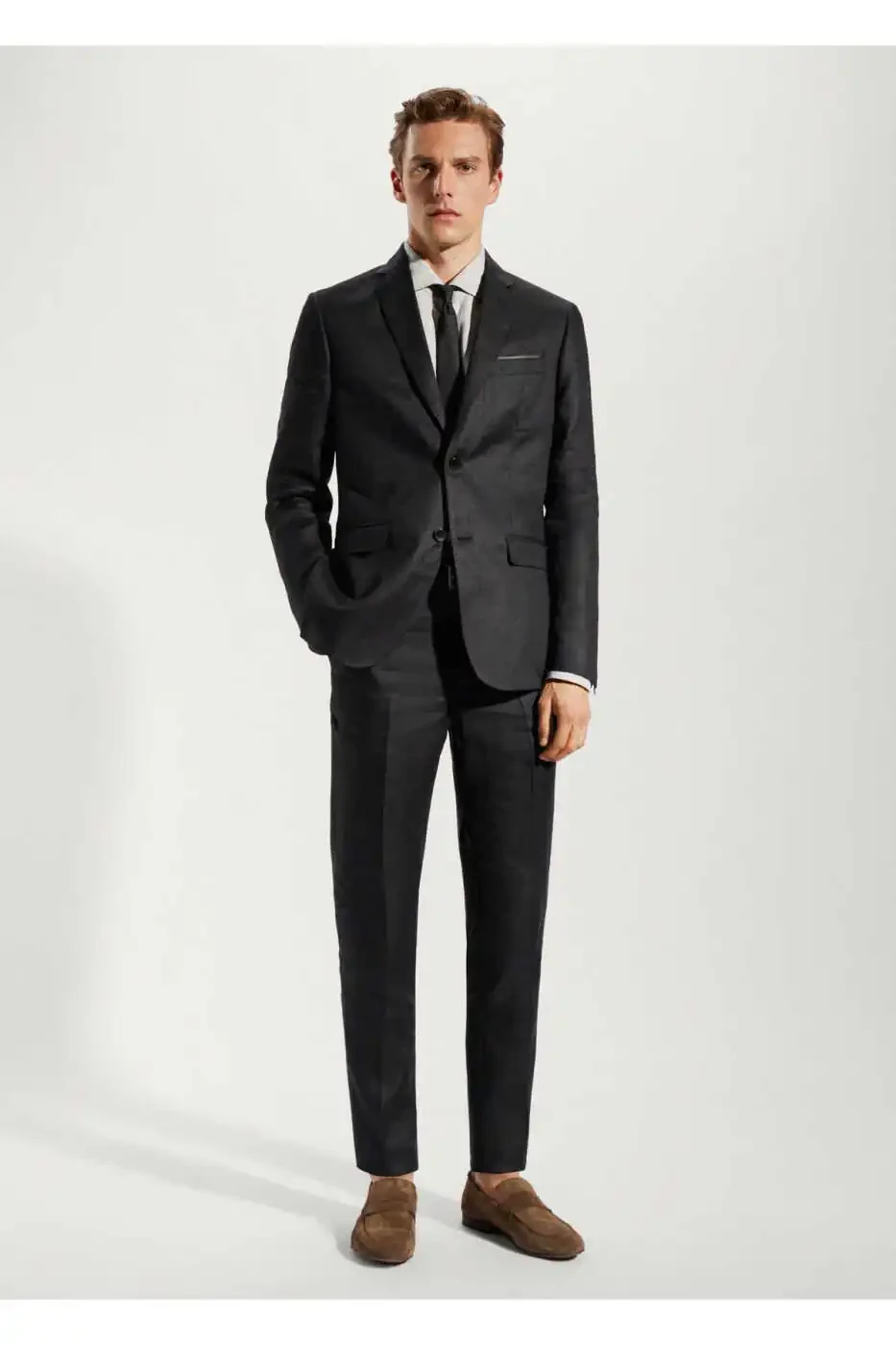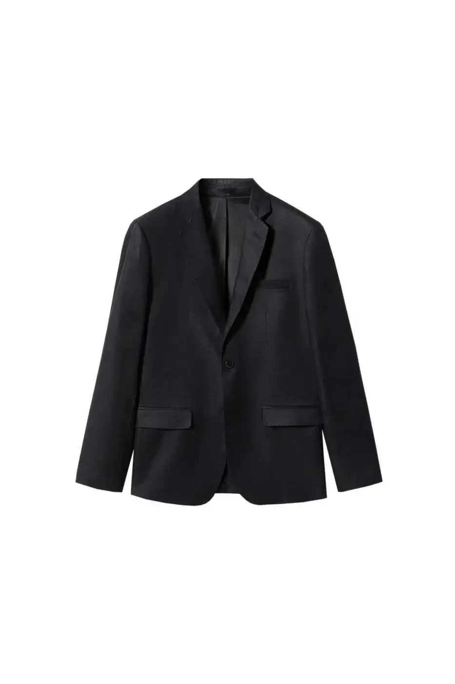 You can achieve a stylish look by combining the Black Men's Blazer Jacket 57120027 with a white shirt, black pants and leather shoes.