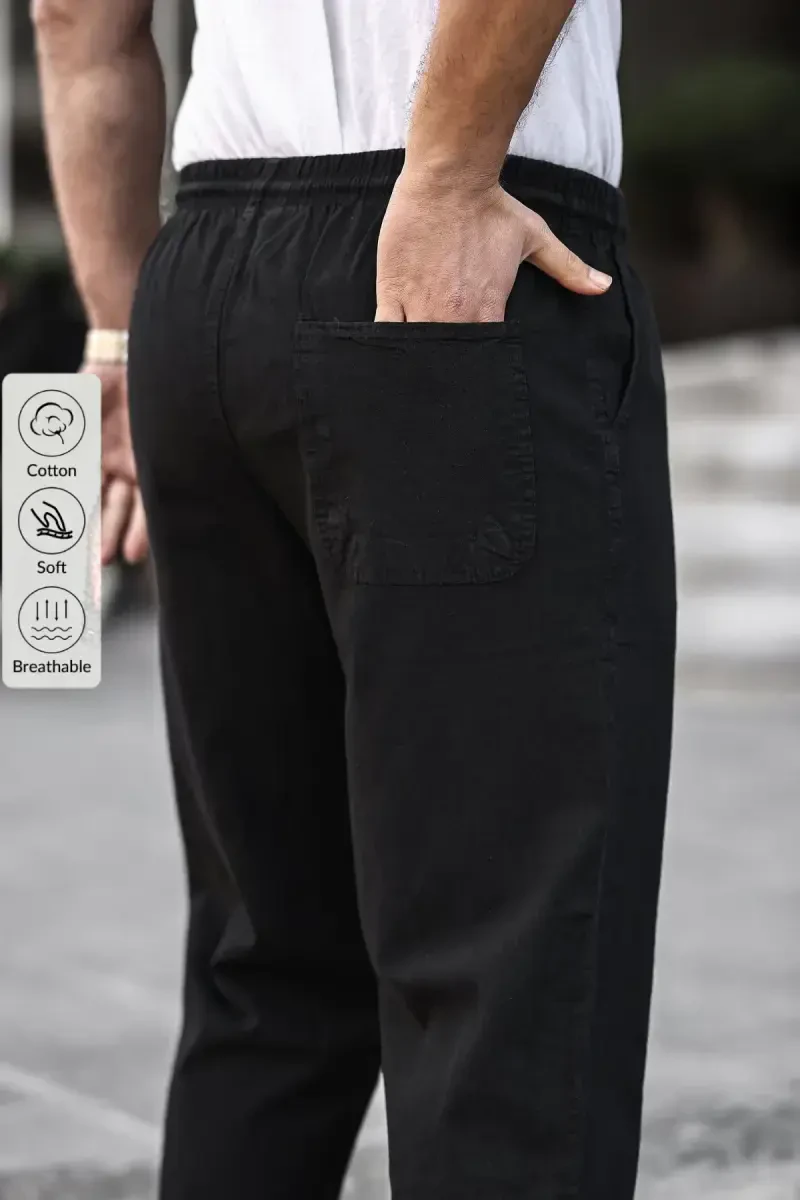 Choose the black men's summer linen blend relaxed pants for a stylish and comfortable look on hot summer days!