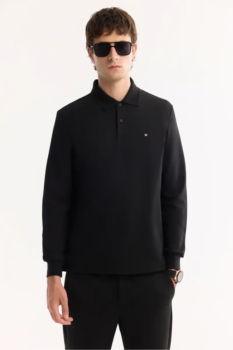 You can combine the Men's Black Sweatshirt 2 Button Polo Neck Cotton Slim Fit B001080 with jeans and sneakers for a casual chic look. You can achieve a more formal look with chinos and leather shoes. You can choose it with shorts and sneakers for your sports activities.
