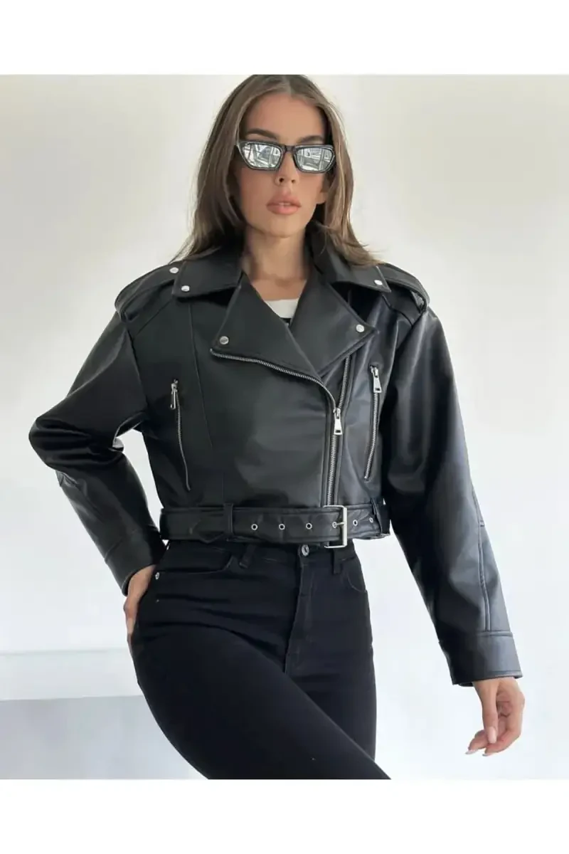 Black Oversized Belted Faux Leather Jacket: A Design that Combines Style and Comfort