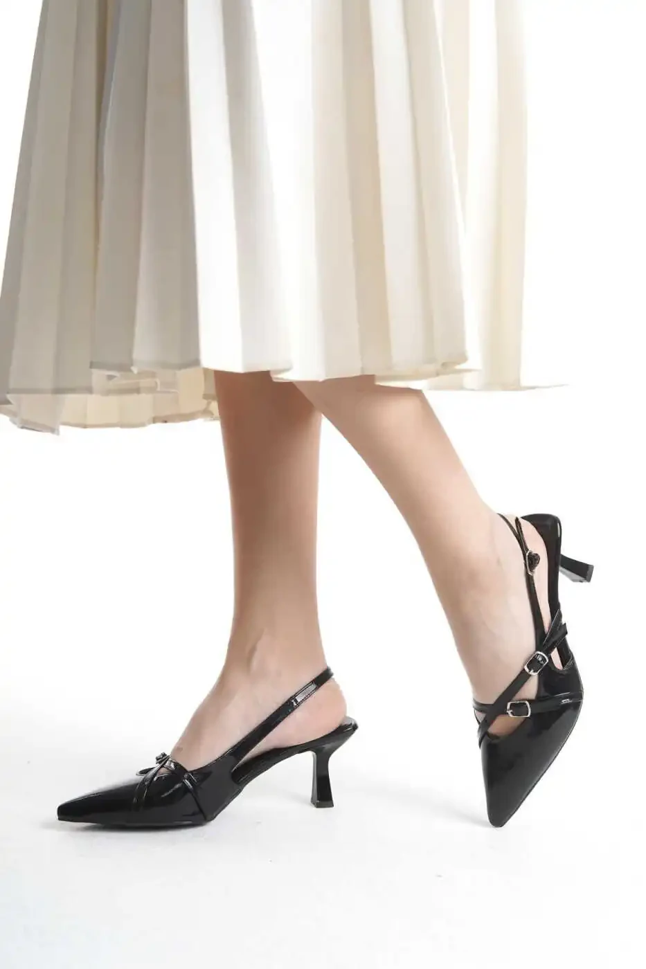 This black patent leather women's shoe, which combines elegance and sophistication, is a must-have for every woman's wardrobe with its pointed toe and eye-catching buckle detail. The 7 cm heel provides a long and elegant look, making the shoe an ideal choice for any special occasion, night out or casual chic outfit. Made from high-quality patent leather, the shoe offers comfortable wear on your feet while also giving a stylish and sophisticated look.