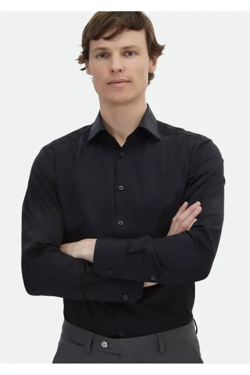 Meet our Black Plain Slim Fit Woven Classic 100% Cotton Shirt, the perfect blend of elegance and style! A timeless style icon, this shirt offers superior comfort with its high-quality 100% cotton fabric, while its slim fit cut perfectly fits your body. This shirt will make you feel chic and confident in any setting, from your work life to your daily combinations, and will become one of the indispensable pieces in your wardrobe. Offering all-day comfort with its soft texture, our Black Plain Slim Fit Woven Classic 100% Cotton Shirt reflects the timeless elegance and minimalism of black, while perfectly matching any pants, jacket, and accessories. You can maximize your style by choosing this shirt for special occasions or when you prefer everyday elegance. This product, offered to you with the RAMSEY guarantee, is on sale at a limited-time campaign price. Hurry and get it and add a sophisticated touch to your style! We recommend you order immediately as our stock is limited. Plus, you can shop with peace of mind with our free 15-day return option. You can visit the relevant link to access detailed return conditions.
