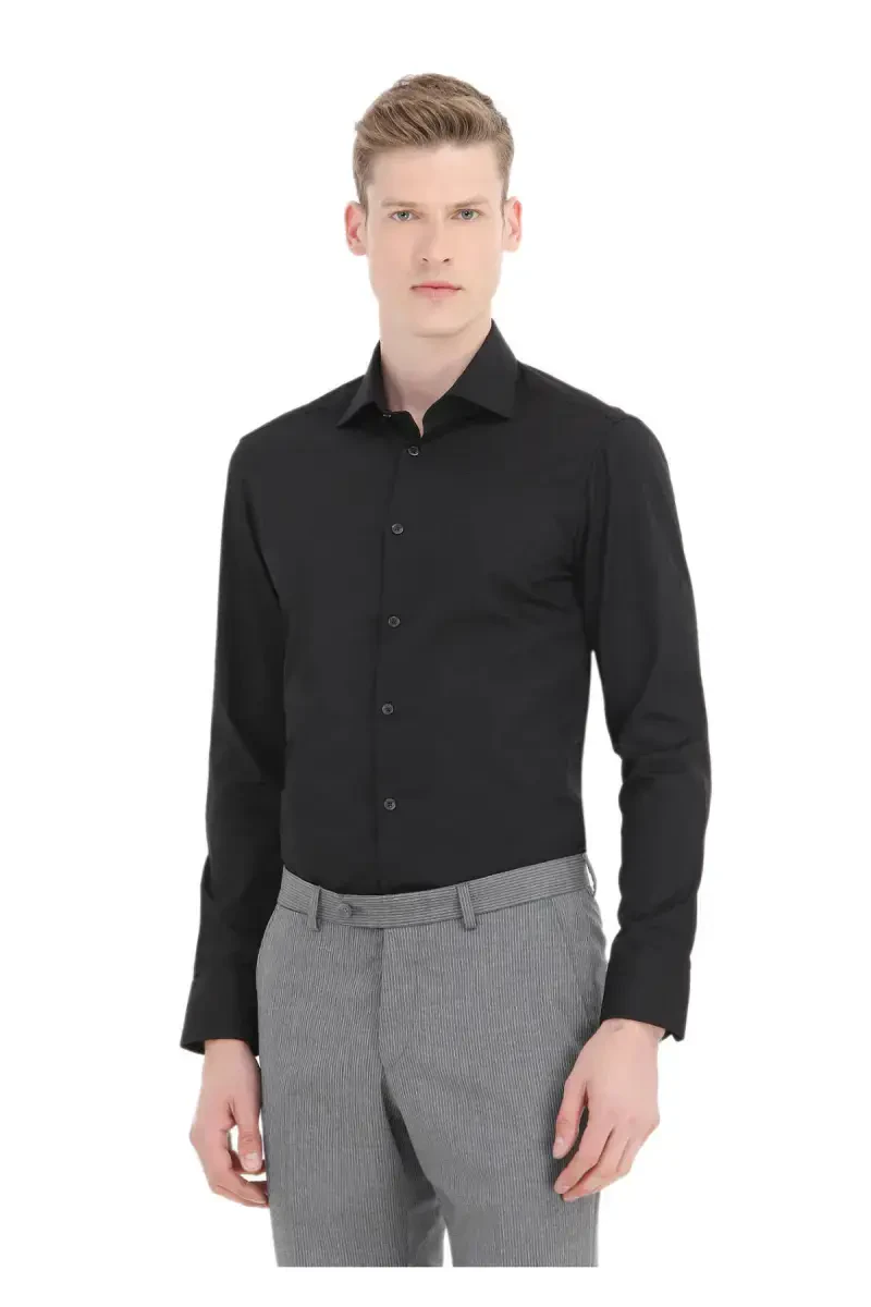 Combining timeless elegance and comfort, the Black Plain Slim Fit Woven Classic Cotton Blend Shirt is set to become one of the indispensable pieces of your wardrobe. This shirt perfectly blends classic and modern styles, allowing you to express your elegance in every setting. Whether it's a job interview, a special occasion, or everyday life, it will always make you look stylish and meticulous. Made from high-quality woven fabric, this shirt is durable and robust for long-term use. The 60% cotton and 40% polyester blend offers a breathable structure, ensuring you feel comfortable throughout the day. Its cotton structure gives your skin a feeling of softness, while the polyester content provides resistance to wrinkles, saving you from the hassle of ironing. Offering a timeless elegance with the nobility of black and its plain pattern, this shirt perfectly matches any combination. The classic collar design easily adapts to both formal and casual styles. The slim fit cut, which hugs your body and creates a modern silhouette, gives you an elegant and stylish look. The regular size cut provides comfortable use and appeals to all age groups. This way, you can feel both stylish and comfortable. The maintenance of the product is also quite easy. Its machine washable feature saves you time and energy. The Black Plain Slim Fit Woven Classic Cotton Blend Shirt is an ideal choice for modern men who seek elegance and comfort. With its quality fabric, stylish design, and comfortable fit, it will be a piece that will keep its place in your wardrobe for many years.