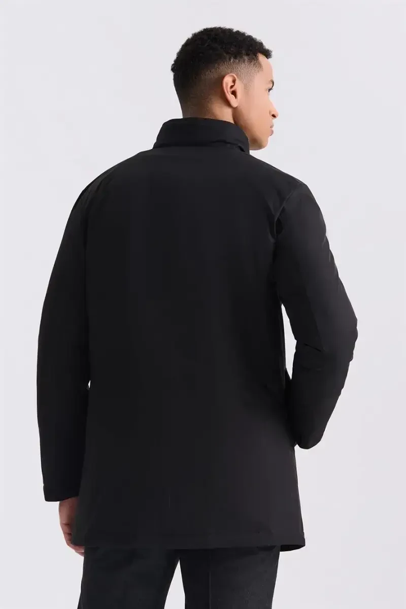**Black Regular Fit Buttoned Shirt Collar Jacket: Style and Functionality**Elevate your style and comfort with this sleek and functional Black Regular Fit Buttoned Shirt Collar Jacket. Crafted from 100% polyester, this jacket is both durable and breathable, making it the perfect choice for all seasons.The jacket features a classic shirt collar and convenient button closure on the front. Its regular fit cut provides a relaxed and unrestricted fit, while the insulation it provides keeps you warm during chilly weather.**Specifications:*** Material: 100% Polyester (Polyester)* Fit: Regular Fit* Collar: Shirt Collar* Closure: Buttoned Front* Color: Black* Suitable Model Measurements: * Height: 187 cm * Weight: 78 kg * Shoulders: 120 cm * Chest: 100 cm * Model Size: Size 50This versatile jacket is suitable for a wide range of occasions, from casual outings to special events. Its black color allows it to be easily paired with almost any outfit.**Benefits:*** Stylish and classic design* Durable and breathable polyester material* Comfortable regular fit cut* Insulated warmth for cold weather* Versatile and suitable for all occasionsStay stylish and warm with the Black Regular Fit Buttoned Shirt Collar Jacket. Order yours today and see the difference for yourself!