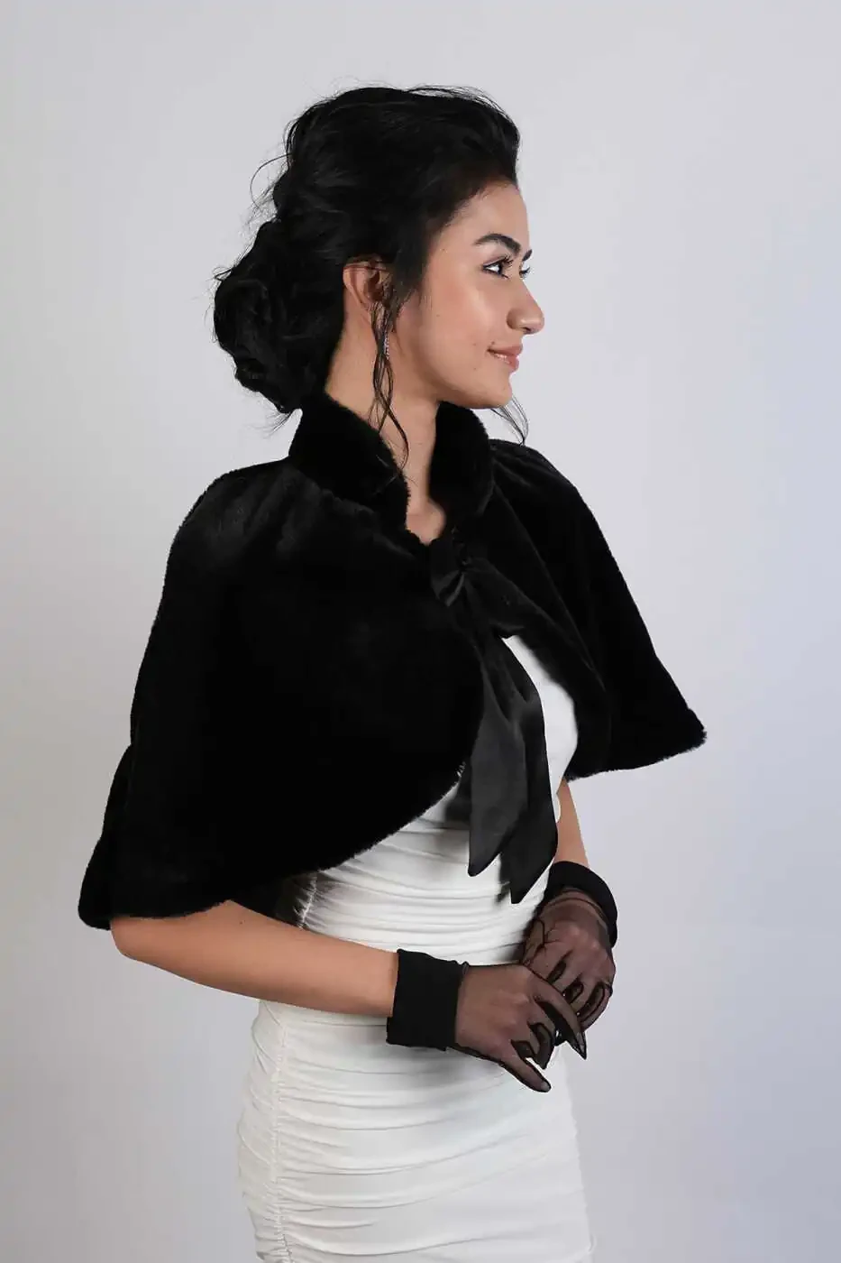 Its soft and luxurious fur will keep you warm while providing an elegant look. The chic black color complements any bridal gown style and ensures you will be an unforgettable part of your wedding day.
