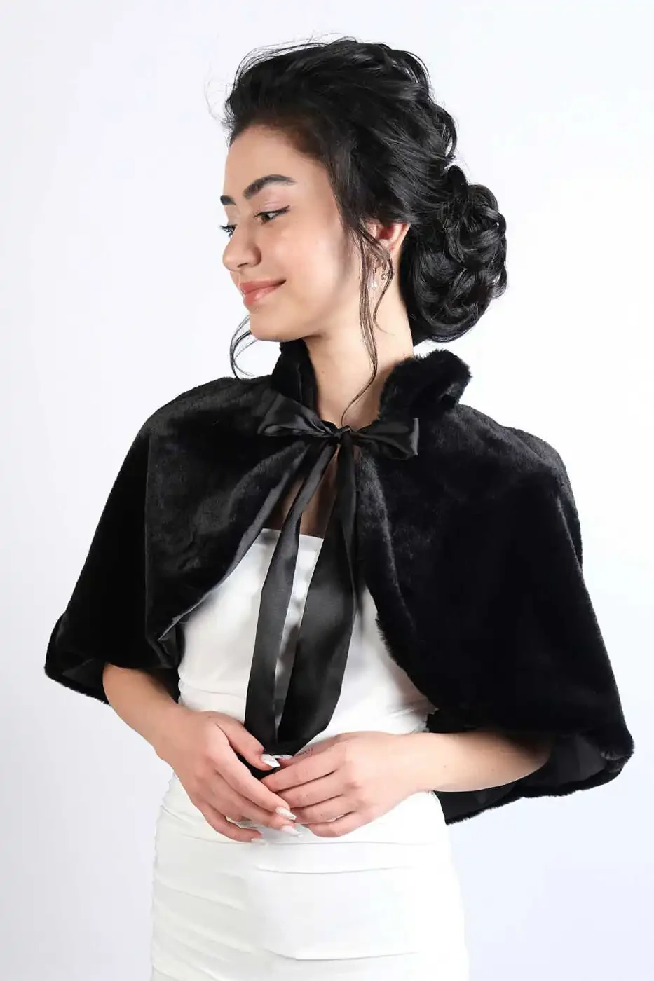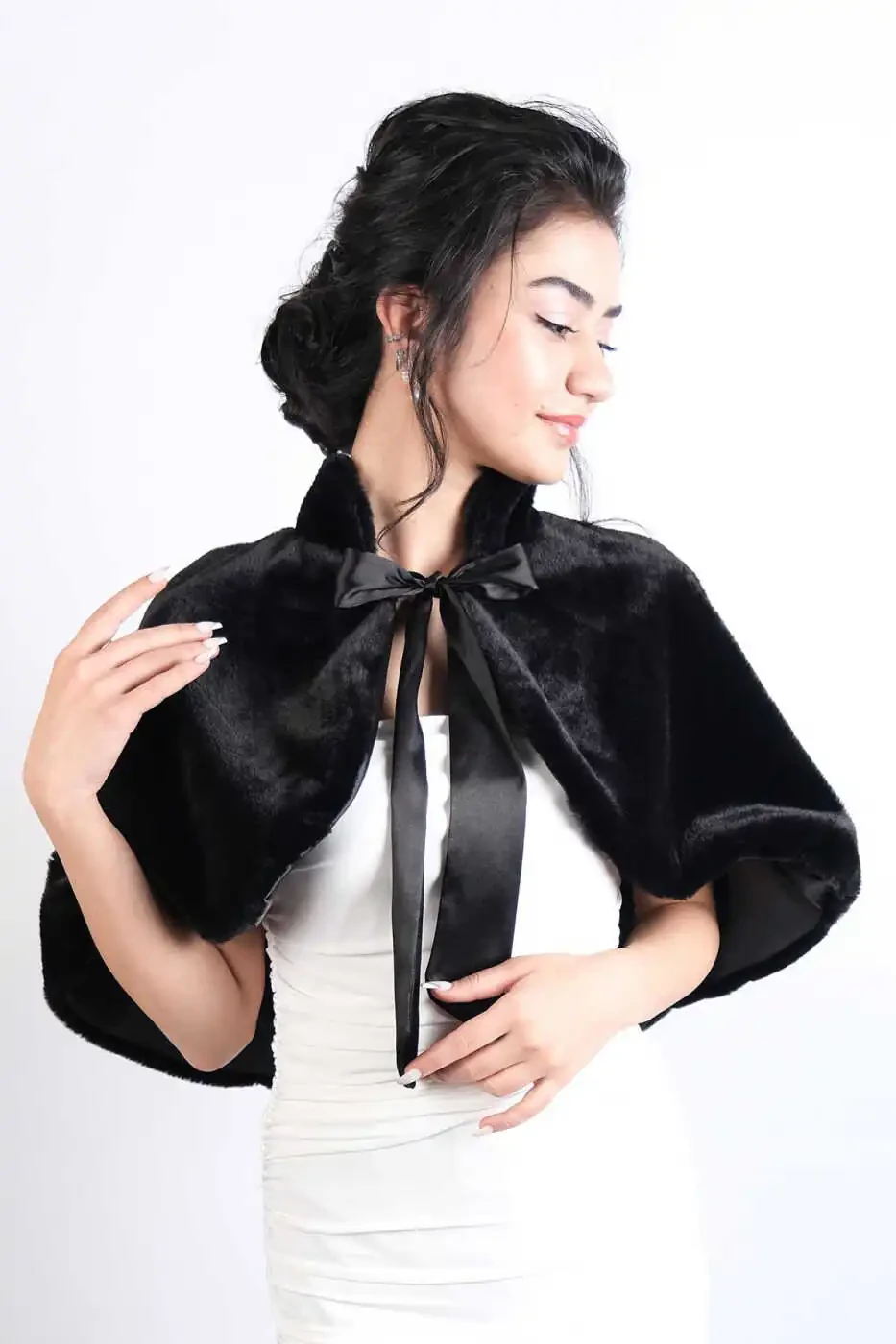 The Black Ribbon Brooch Bridal Bolero Fur is the perfect choice to make you feel special and chic on your wedding day. Order now to feel like a princess on your special day.