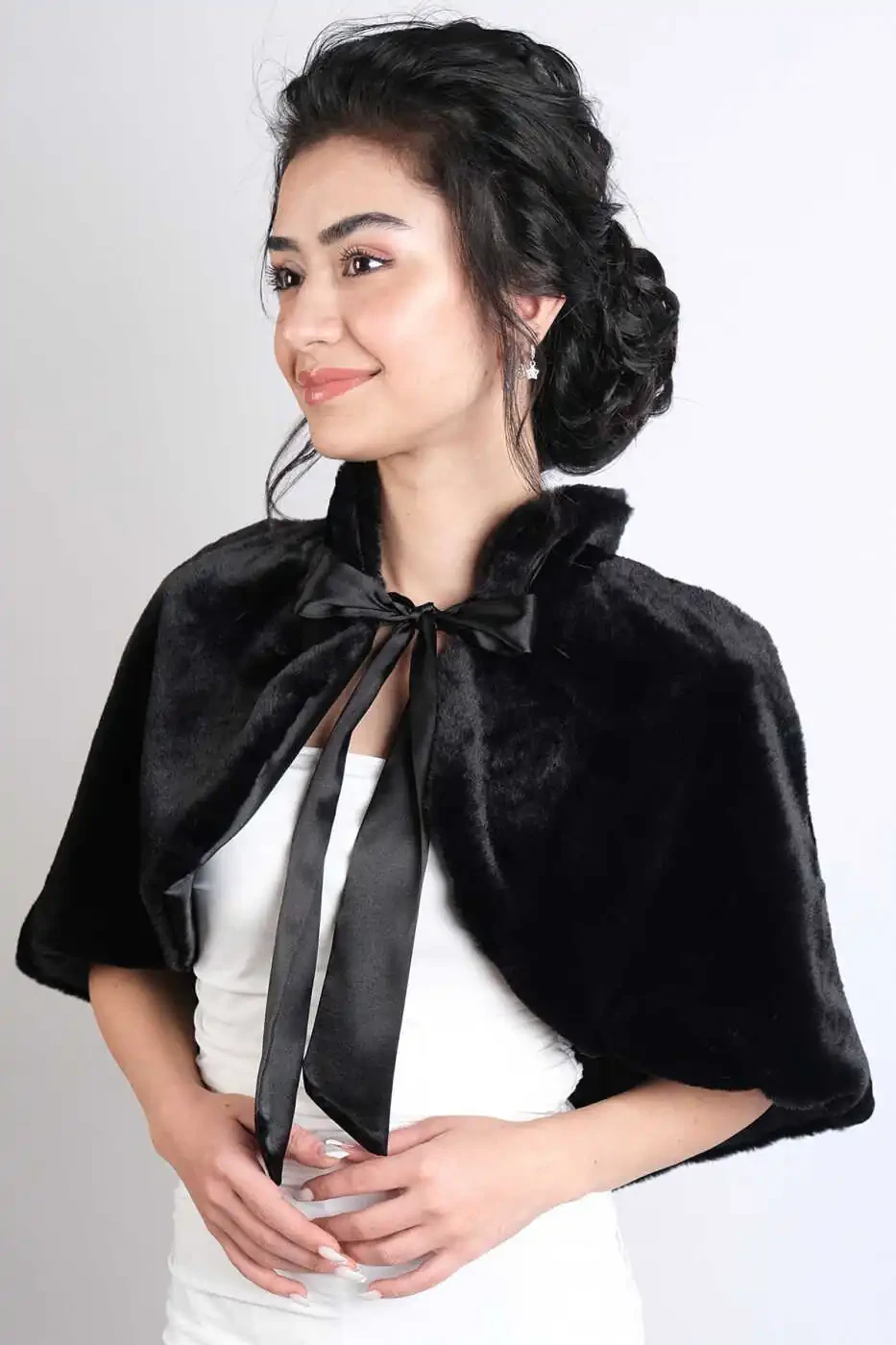 The Black Ribbon Brooch Bridal Bolero Fur is a design marvel that combines elegance and sophistication, making it the perfect complement to create a stunning look on your wedding day.