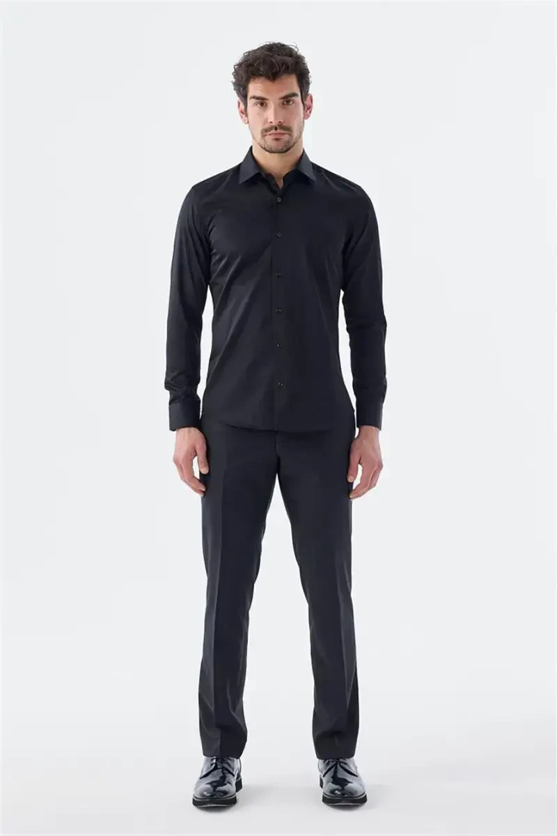 Feel special with the Black Slim Fit Italian Collar Long Sleeve Classic Dress Shirt, a perfect blend of elegance and style. Made from 100% cotton satin, this shirt will enhance your style at any formal or special occasion with its elegant black color and perfect cut. Its soft texture and breathable structure offer comfortable use throughout the day. The Italian collar and slim fit design perfectly highlight your body lines while adding a modern touch to your classic look. The long sleeves and perfect fit with a tie help create a flawless look for you. Made with quality materials and meticulous workmanship, this shirt is a timeless piece you can use for years. You can confidently choose your Black Slim Fit Italian Collar Long Sleeve Classic Dress Shirt for your business life, special events, or everyday stylish combinations. Experience style and comfort together by choosing the right size. This shirt, which will make you feel special and confident every time you wear it, will become one of the indispensable pieces of your wardrobe. This unique shirt will complete your style and give you a unique look. The attention to detail and superior quality fabric set this shirt apart from others. Make the right choice for a stylish and comfortable experience.