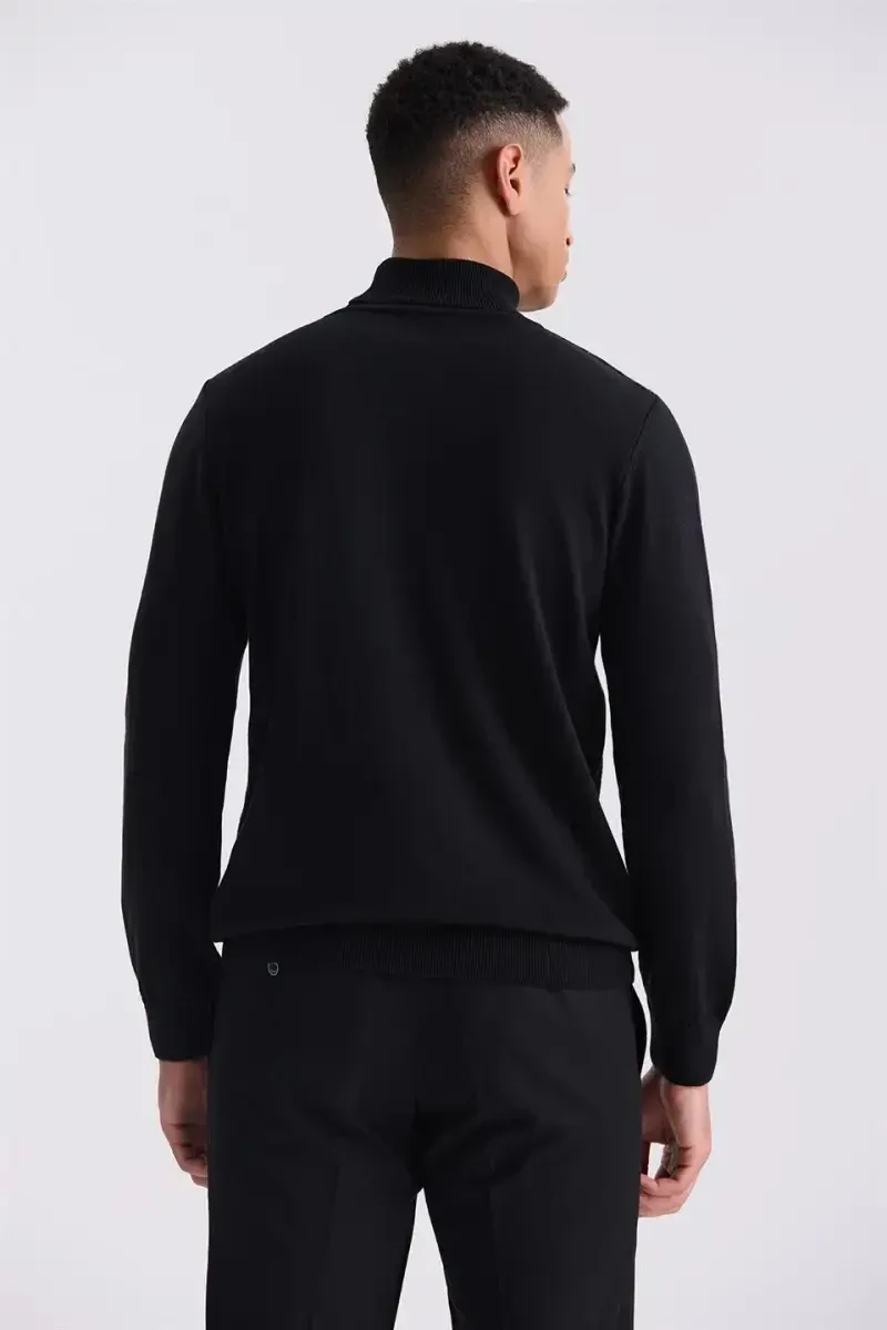 **Black Slim Fit Full Turtleneck Knitted Sweater**