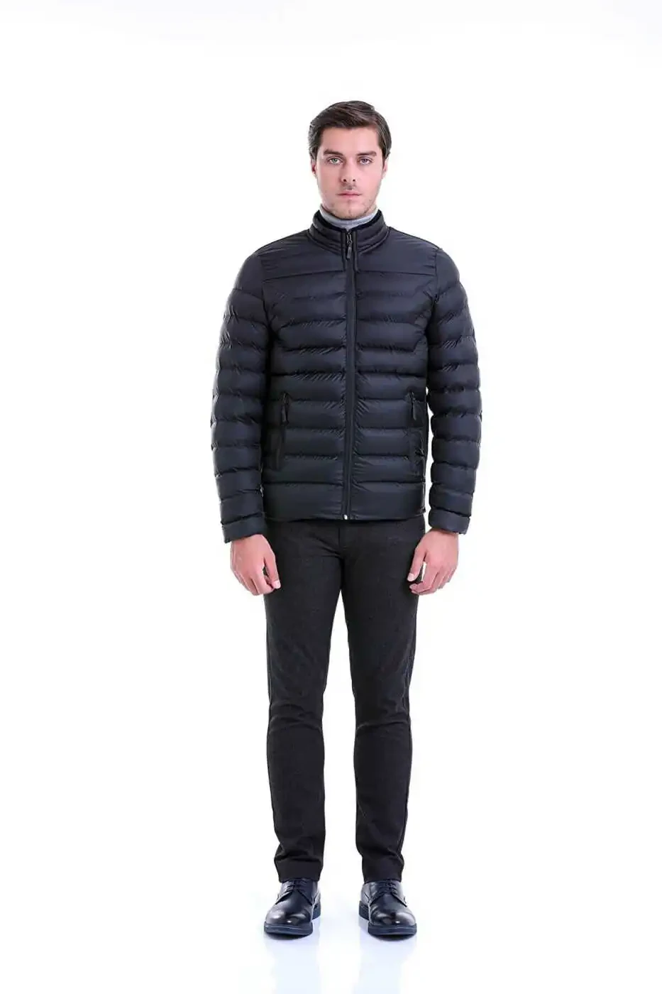 Combining style and comfort, the Black Slim Fit Plain Efes Mandarin Collar Puffy will keep you warm on cold winter days while allowing you to stay stylish. Made from high-quality materials, this jacket fits perfectly to your body with its slim design and does not restrict your freedom of movement. The classic mandarin collar design adds elegance to your style. The plain cut suits all body types. Its lightweight and breathable structure will not bother you. An ideal choice for everyday use, this jacket will allow you to look stylish and warm at business meetings, social events and in your daily life.