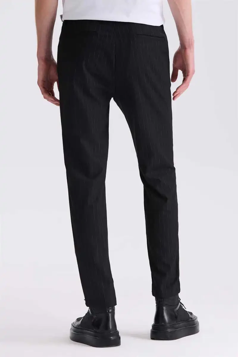 Black Slim Fit Striped Canvas Pants: Comfort and Style Combined