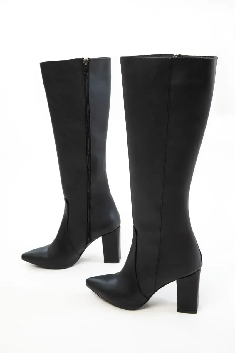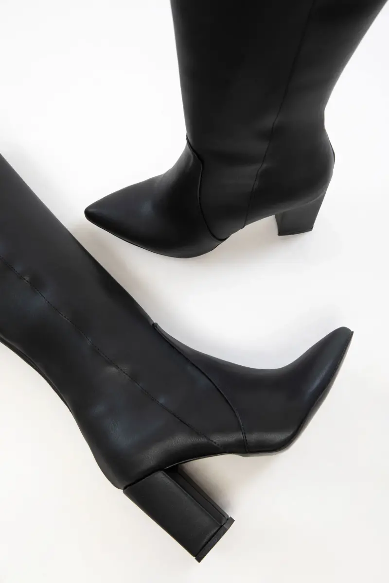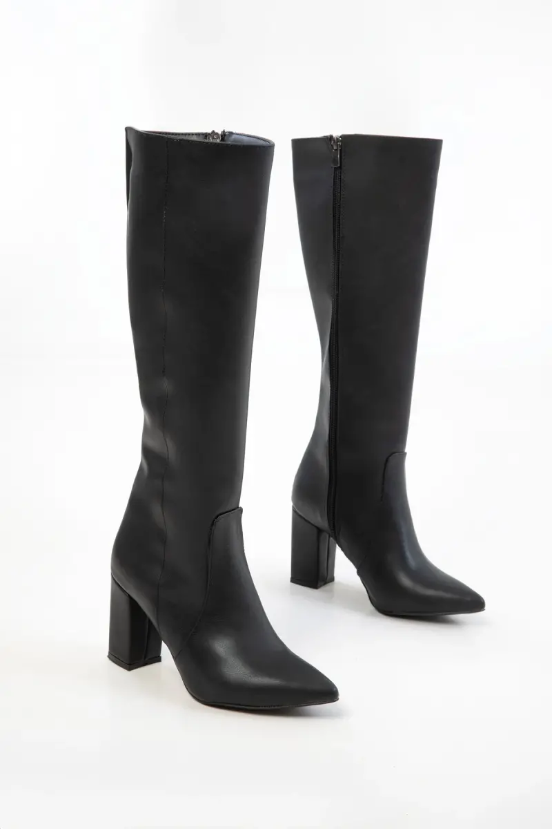 Black Women's Boots 19956 is a model that captivates you with its elegant design and superior comfort. Made with high-quality leather, the boots provide a perfect fit for your feet while highlighting your style. Its high heel allows you to feel more confident with every step, helping you complete your style. In addition, its durable sole structure provides comfortable use all day long.