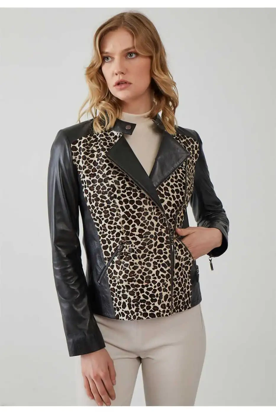 Standing out with its stylish leopard print, the Black Leopard Women's Leather Jacket is the perfect choice to add confidence and power to your style. This jacket, which you can comfortably wear in everyday life, special occasions or night outings, will ensure that you always look stylish and stunning.