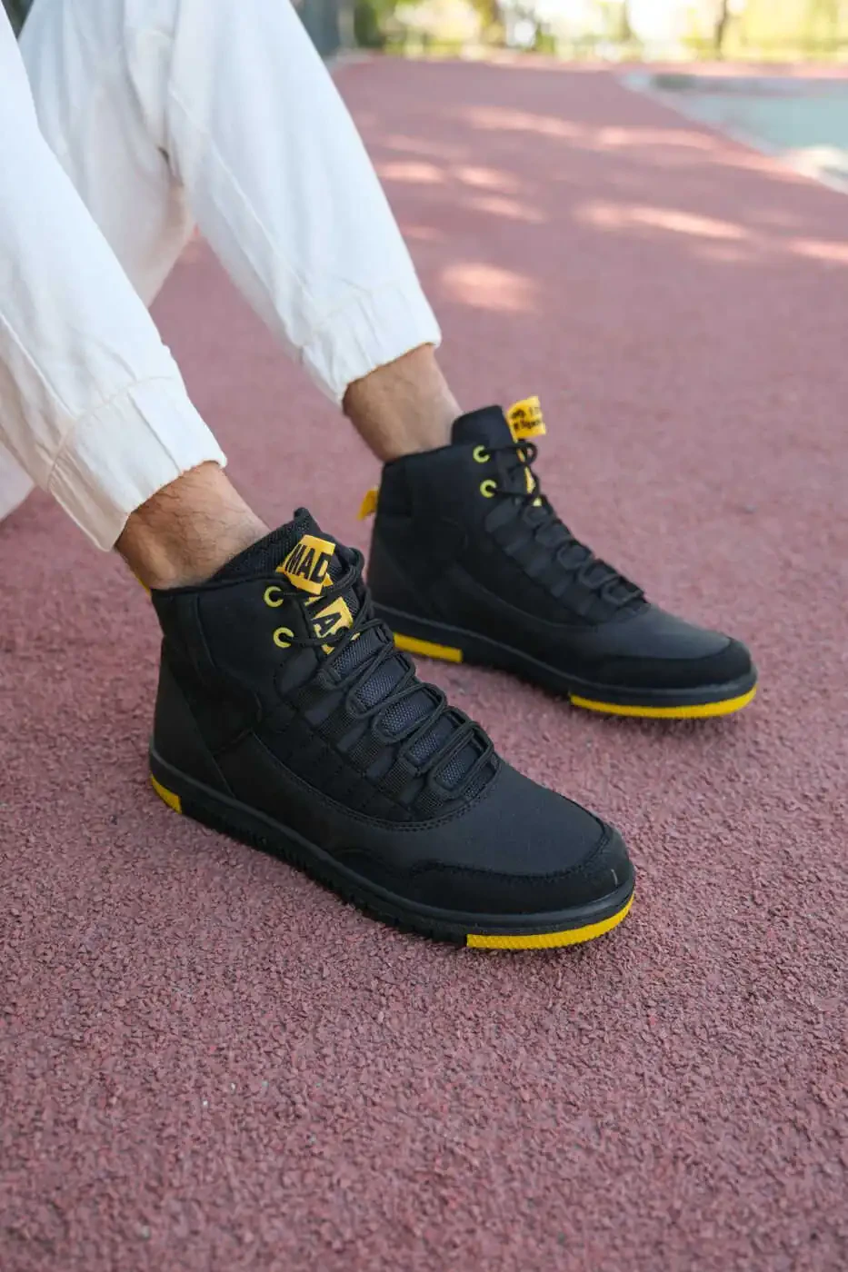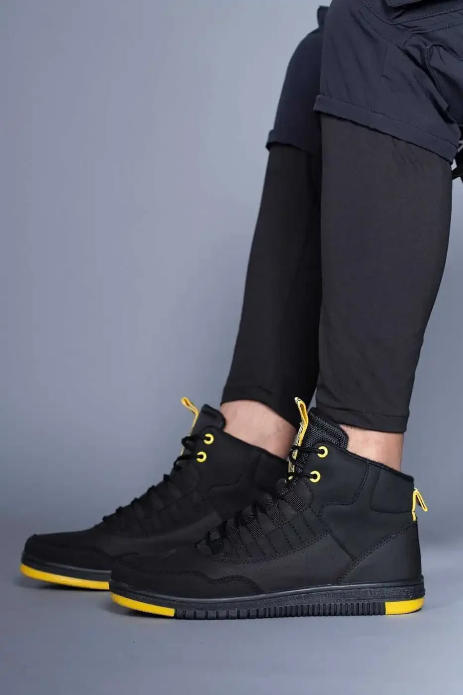 Add a modern touch to your everyday style with the Black Yellow Men's Sneaker Boot 00122262, which combines style and comfort. Its durable construction and comfortable inner lining provide long-lasting comfort. Its sporty look makes it compatible with any outfit. It is the ideal choice for men looking for a stylish and comfortable shoe suitable for everyday use.