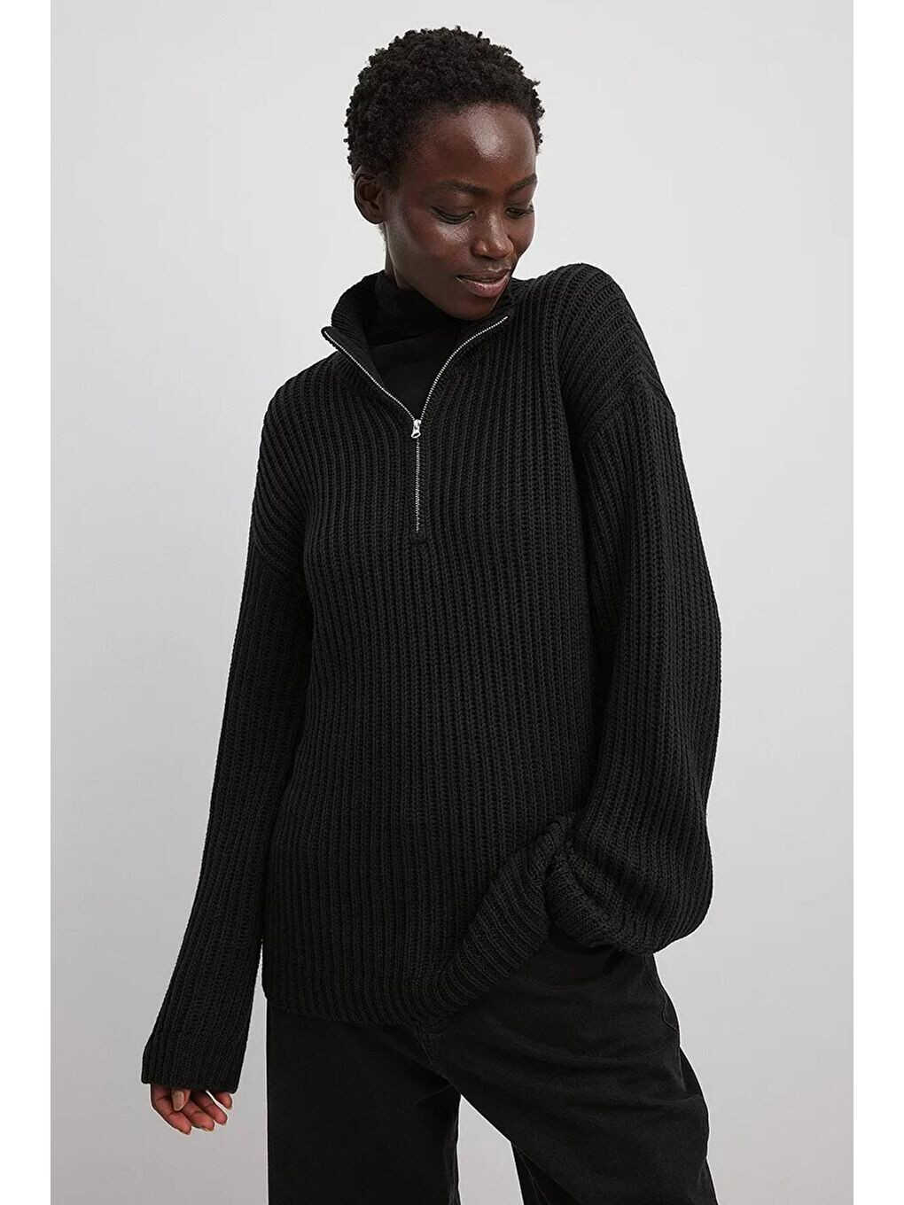 Black Sweater, Zipper Collar Sweater, Basic Sweater, Everyday Sweater, Women's Sweater, MG1960, Sweater Models